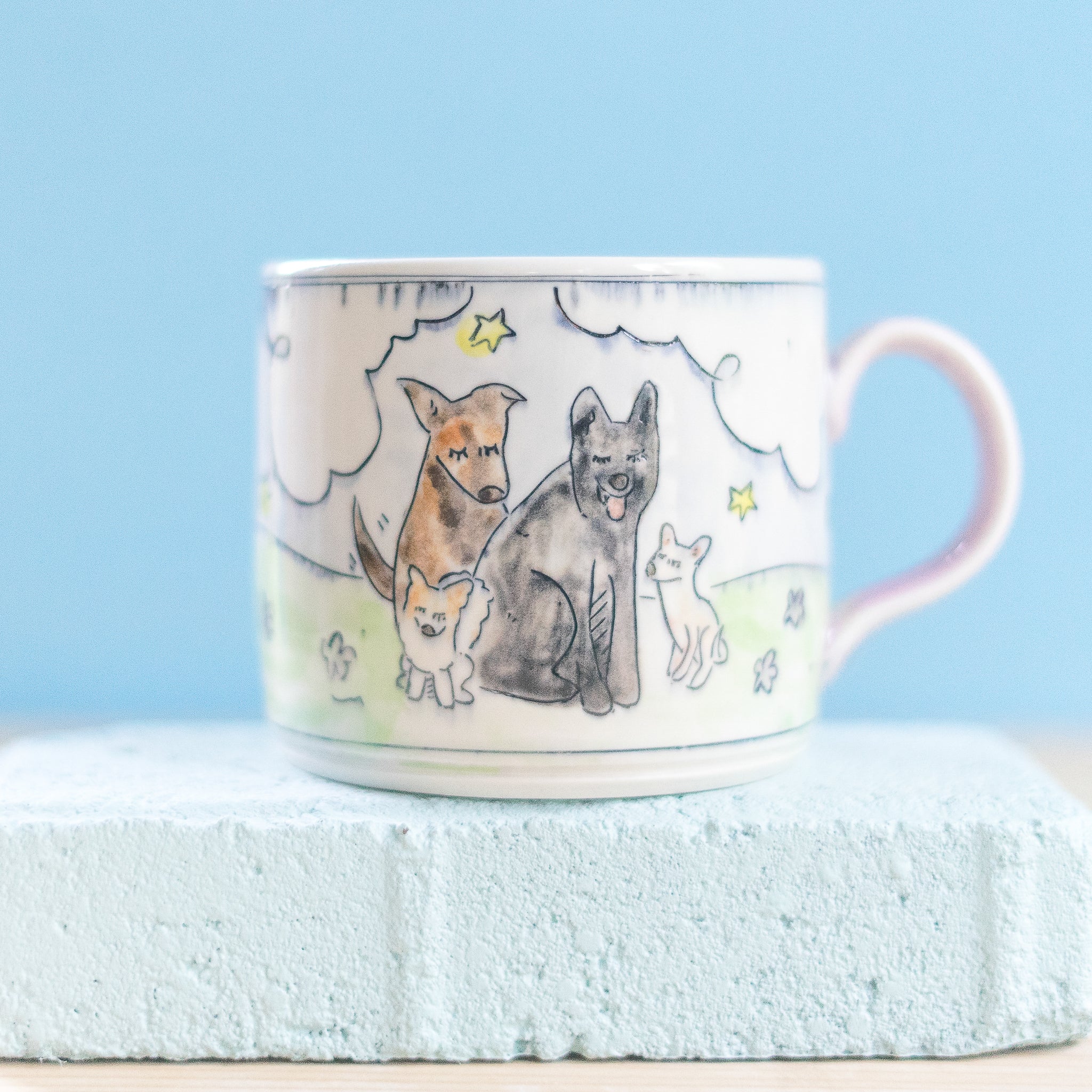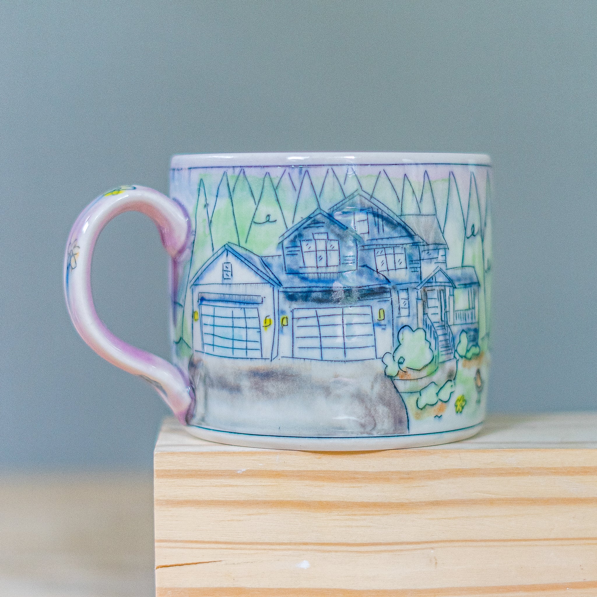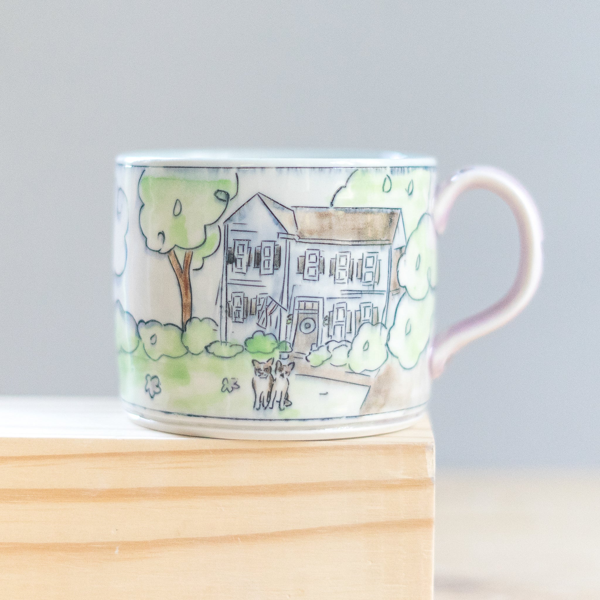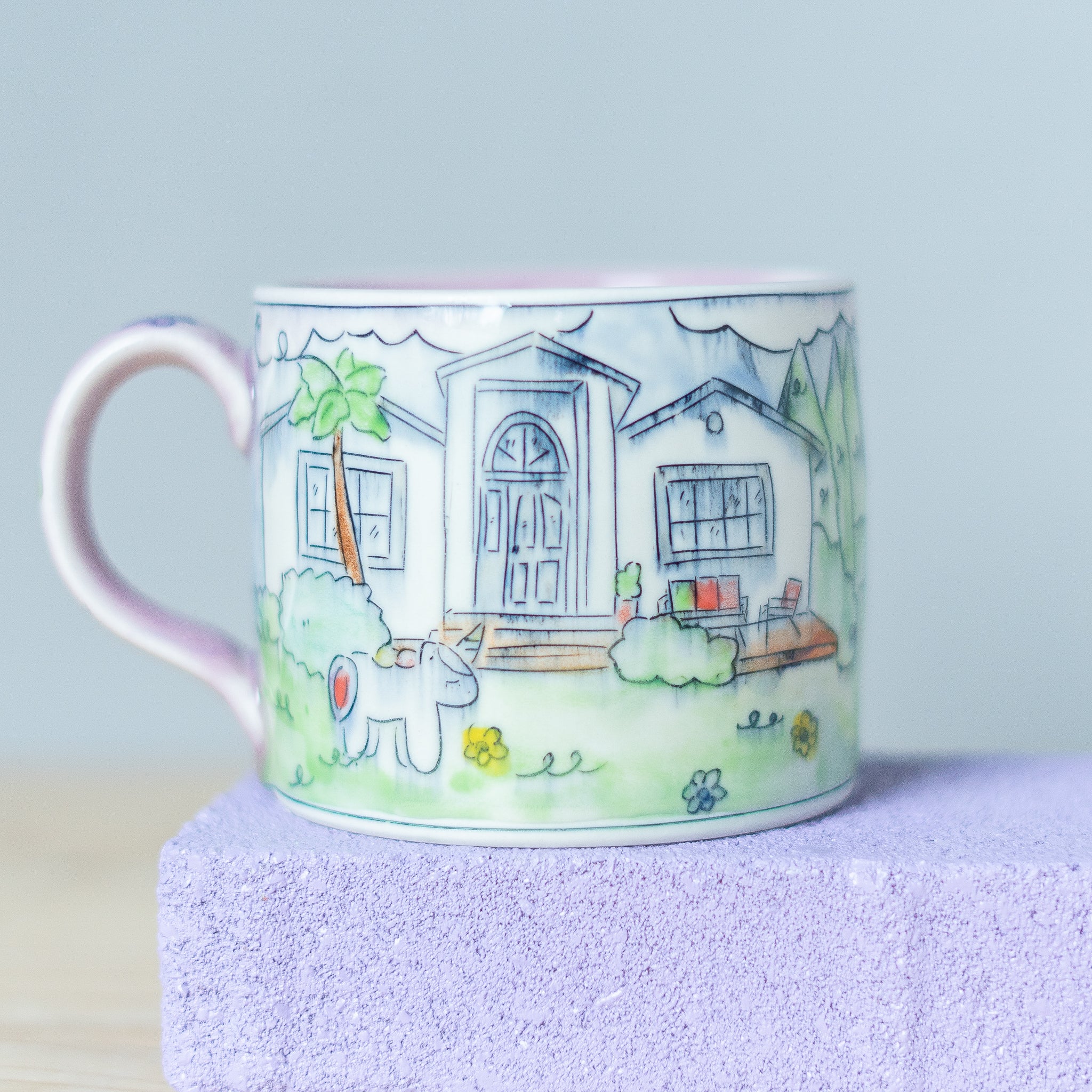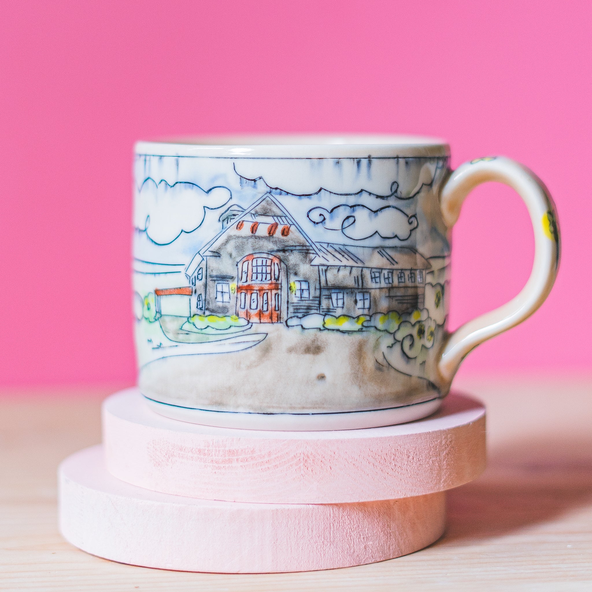 Let's design a mug together! I'd love to help illustrate your pets, memories, homes, or any other wacky and wonderful ideas you come up with!