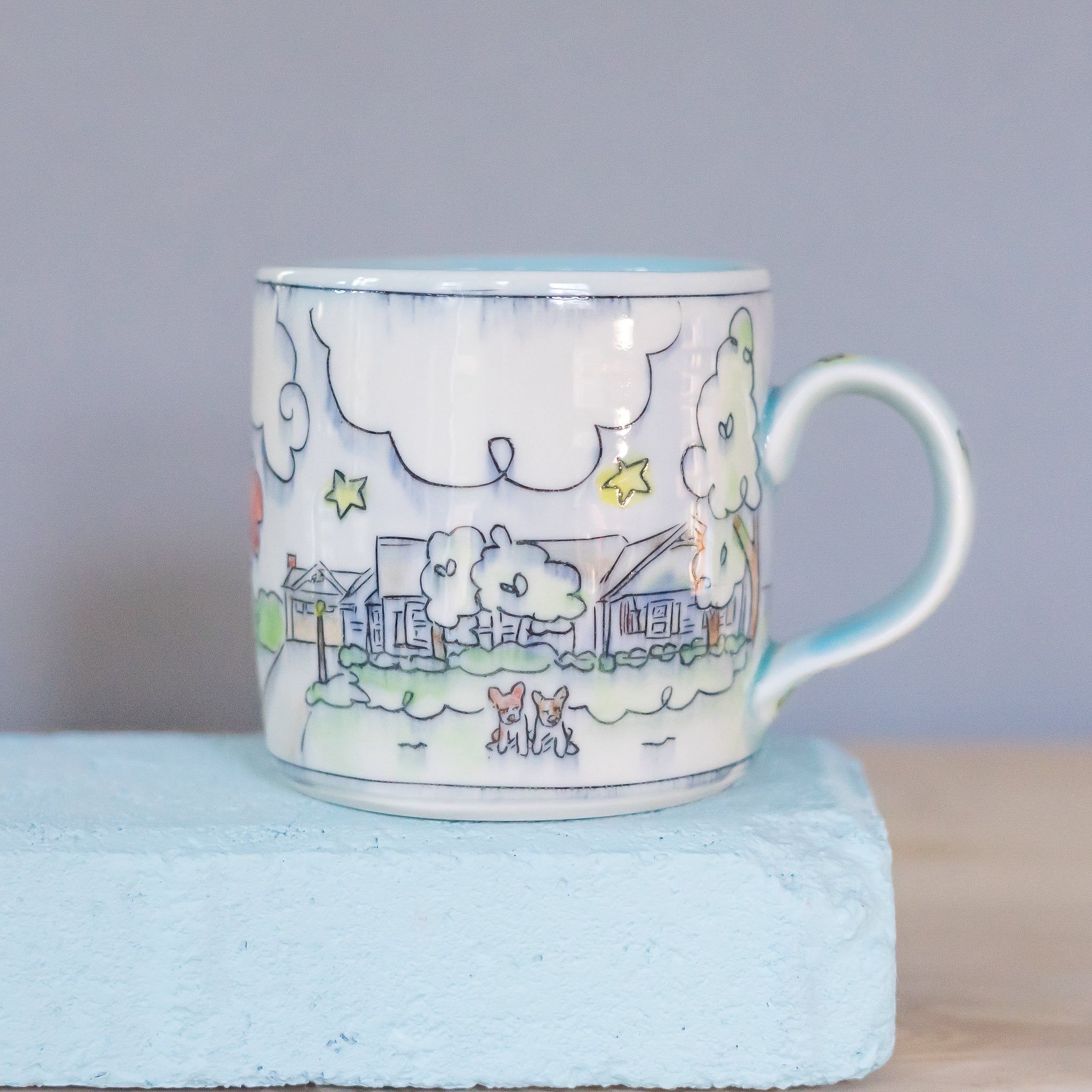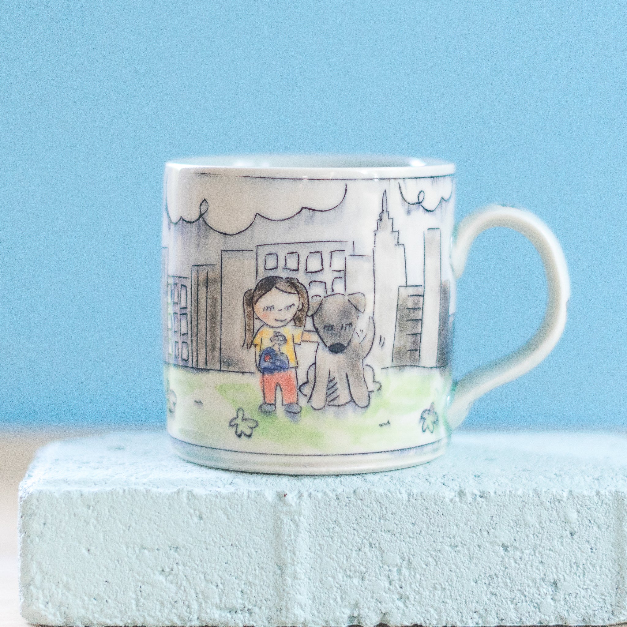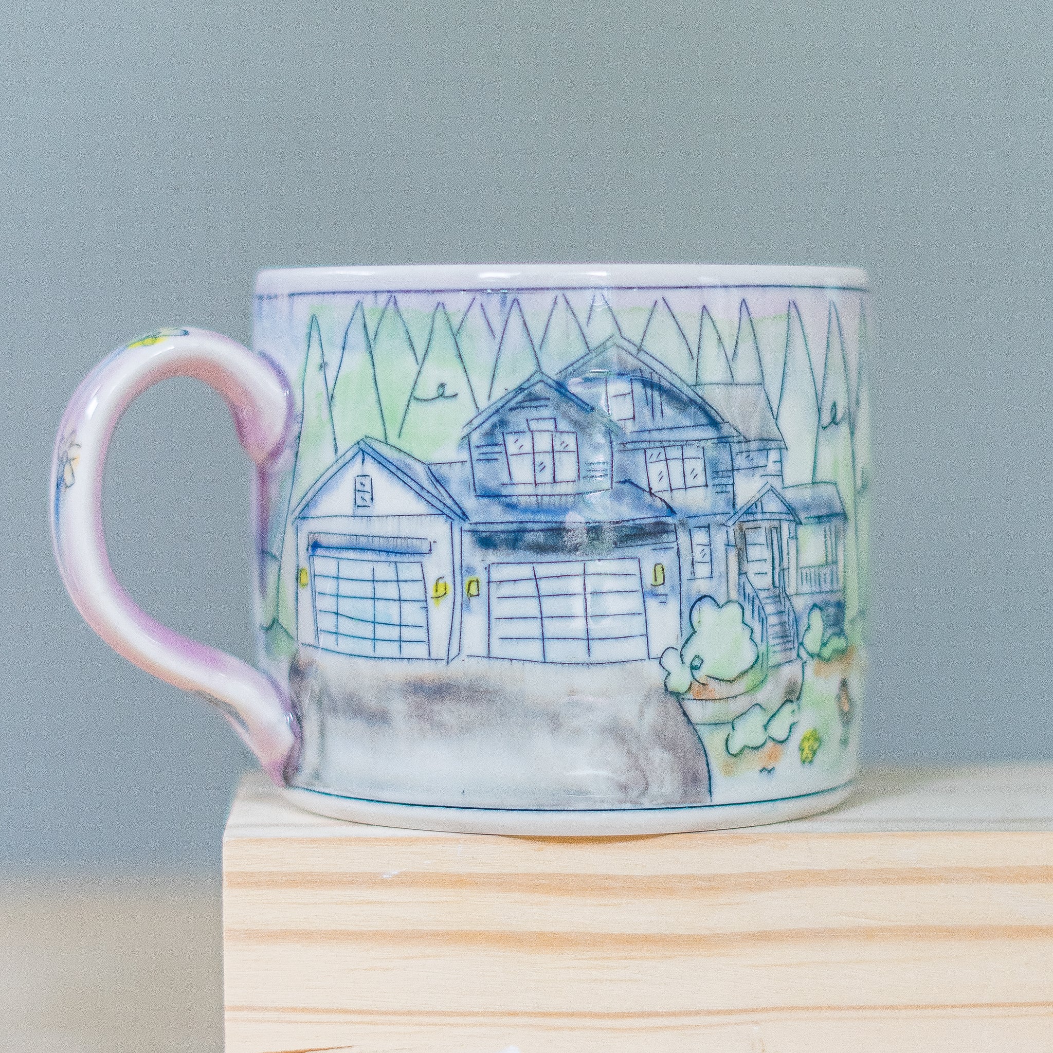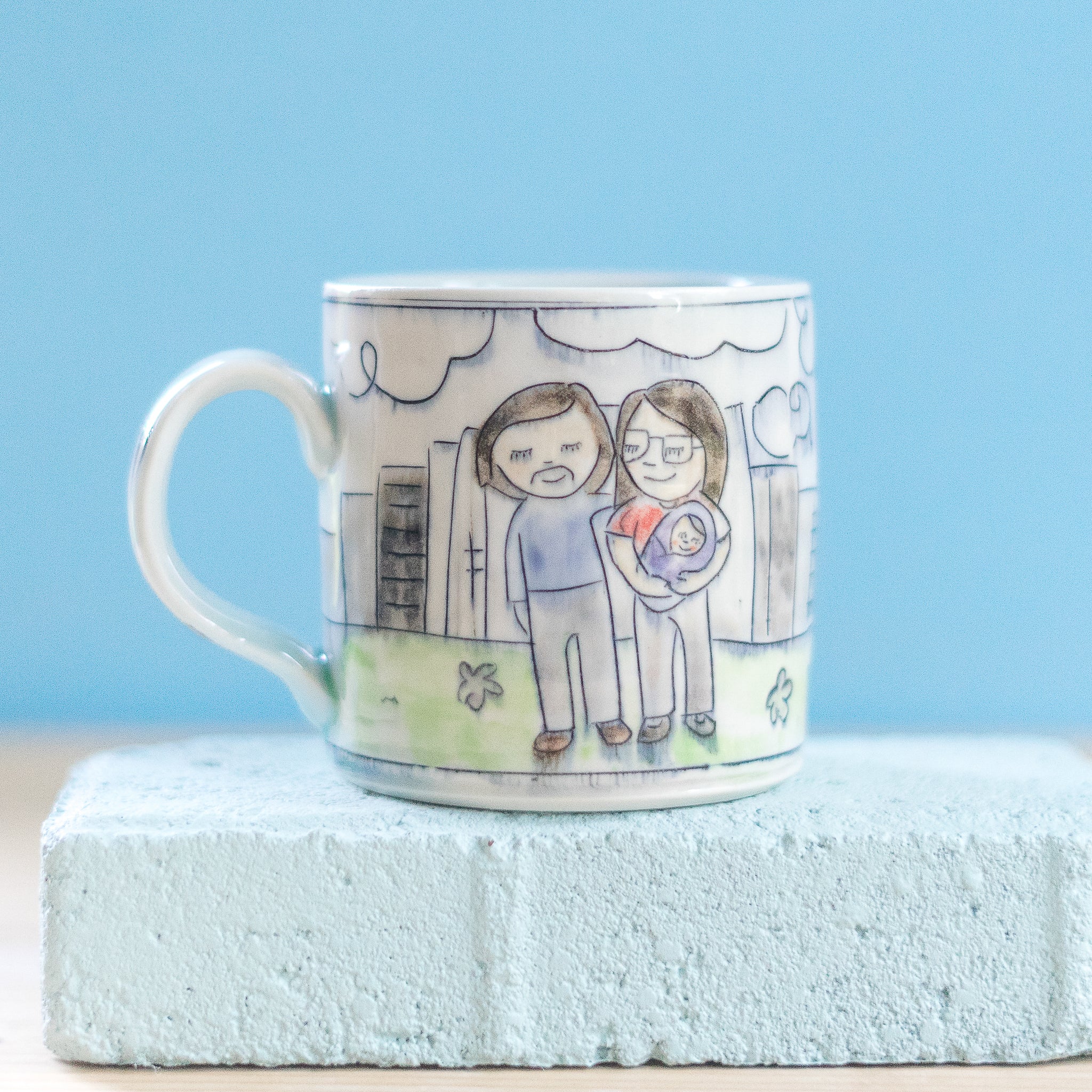 Let's design a mug together! I'd love to help illustrate your pets, memories, homes, or any other wacky and wonderful ideas you come up with!