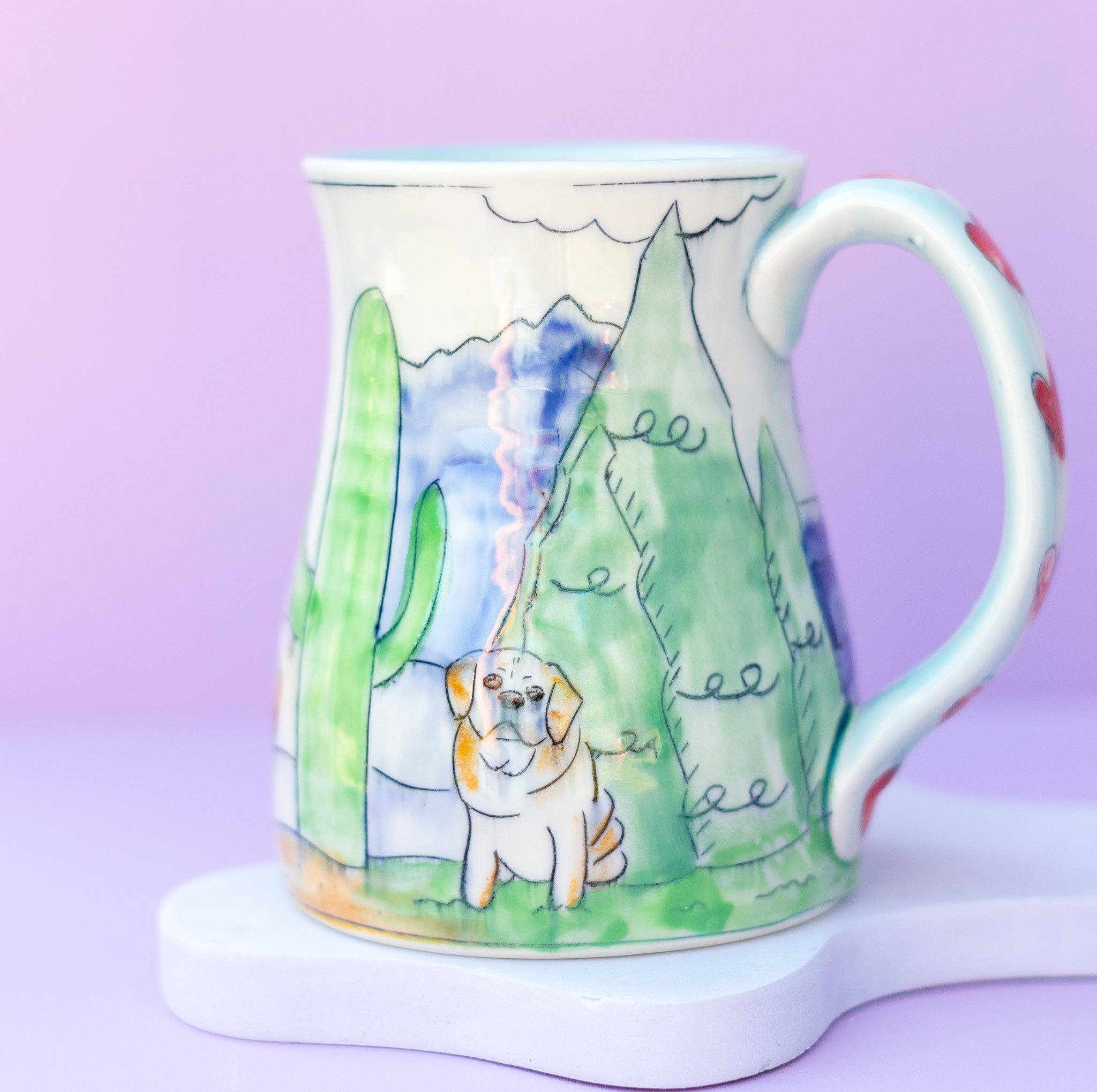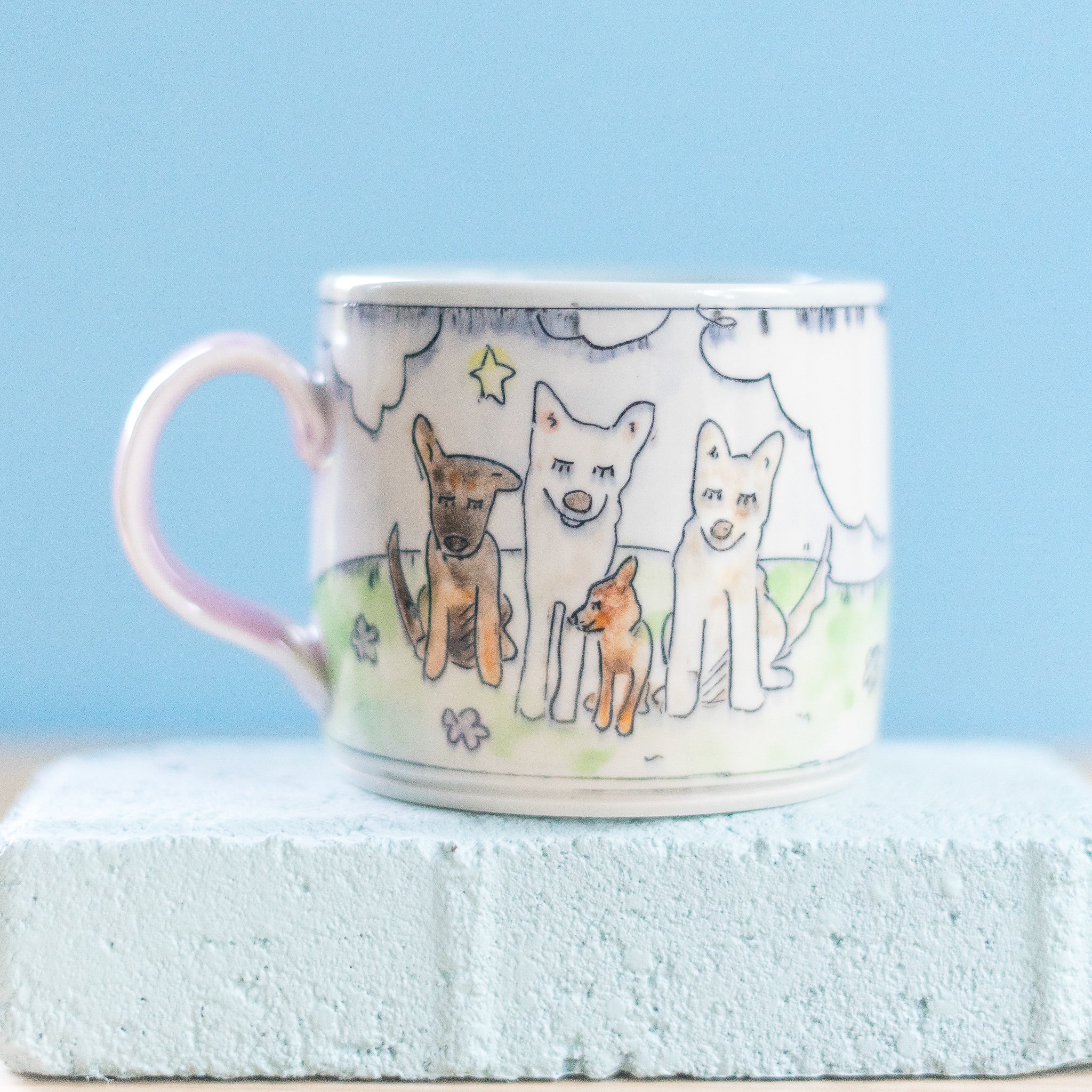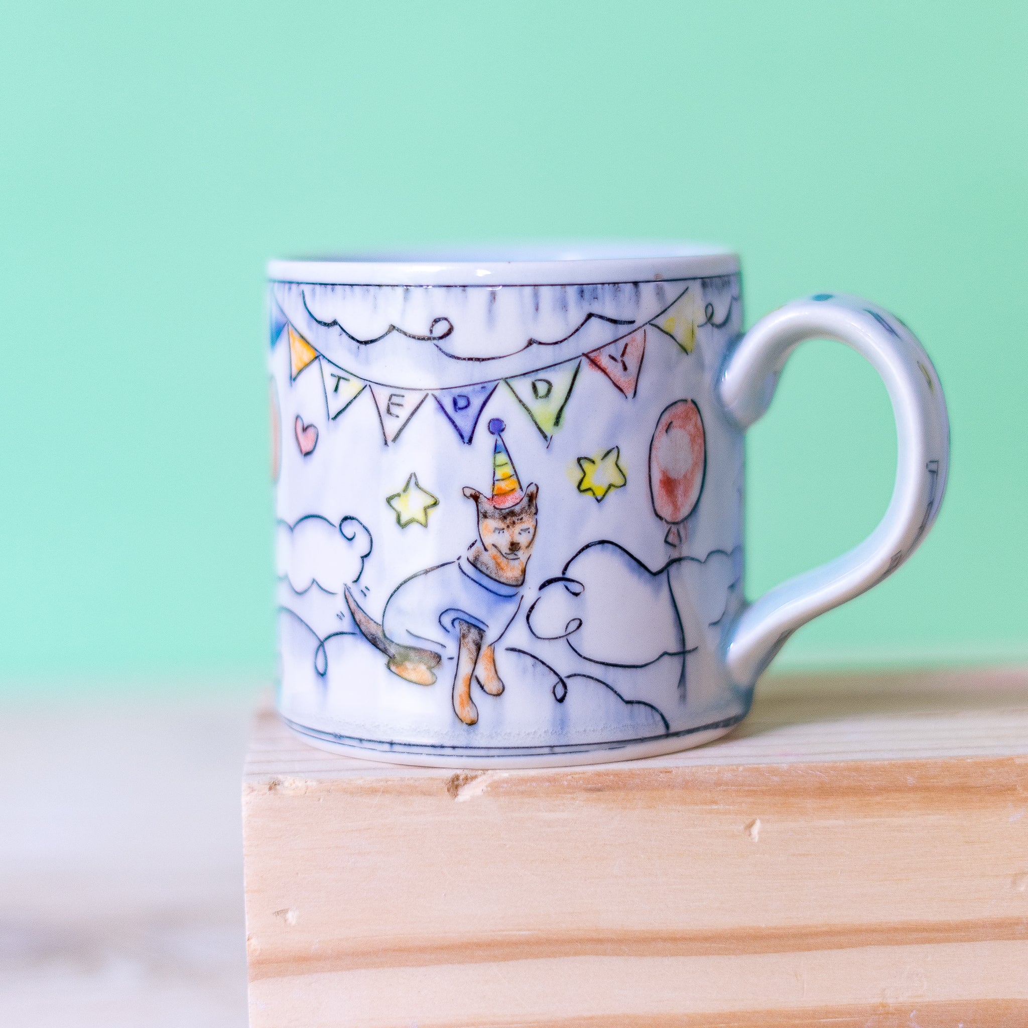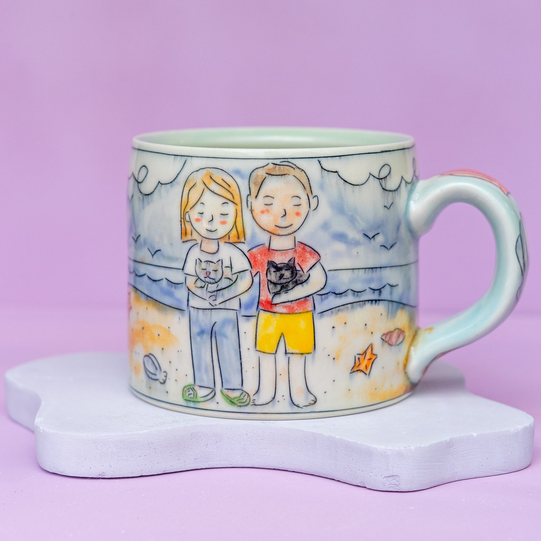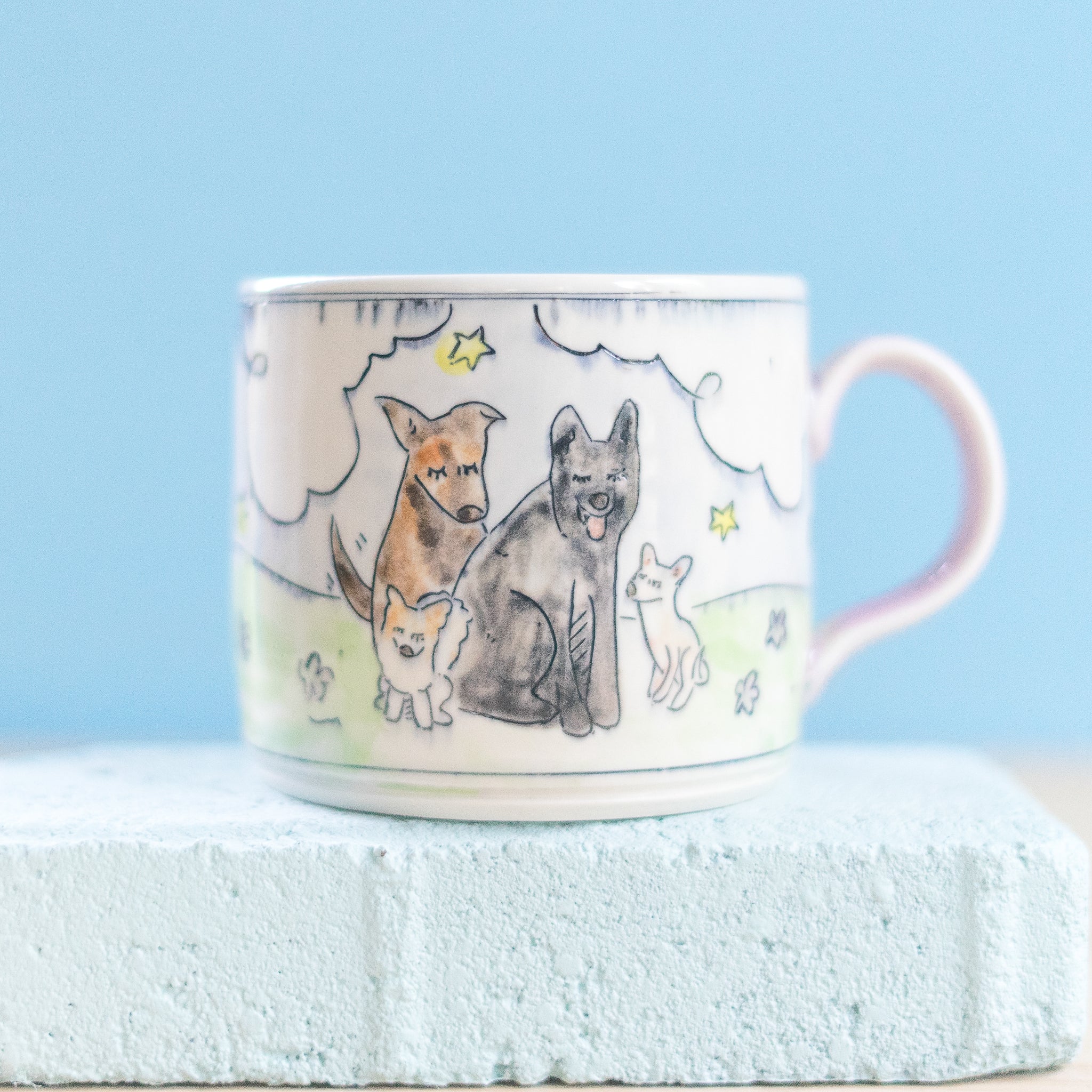 Let's design a mug together! I'd love to help illustrate your pets, memories, homes, or any other wacky and wonderful ideas you come up with!