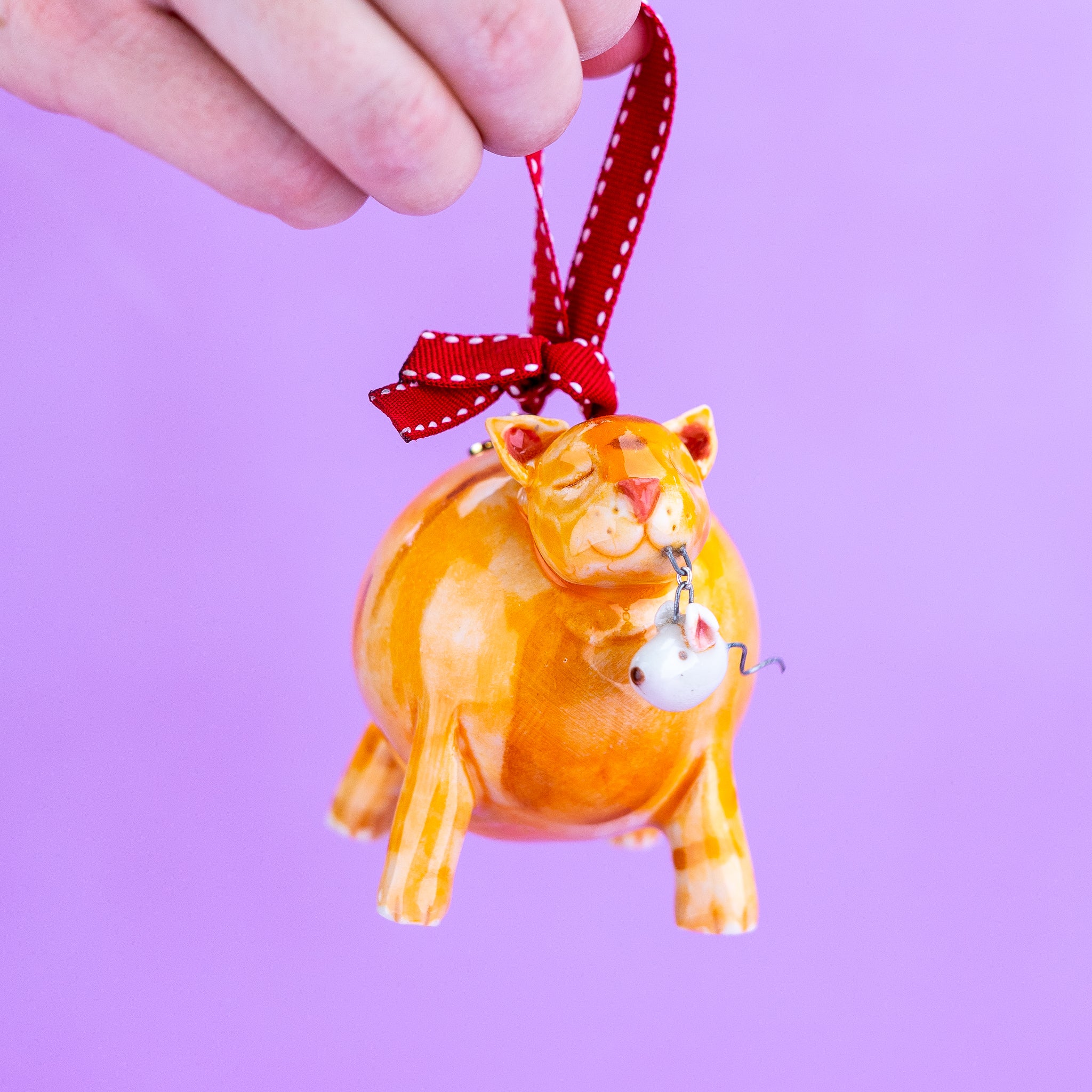 A delightful bauble to deck the halls! Perfect for adding personality to your tree or displaying as a year-round accent piece that sparks joy every time you see it. Measures approximately 2.5 x 2 x 2.75" excluding ribbon