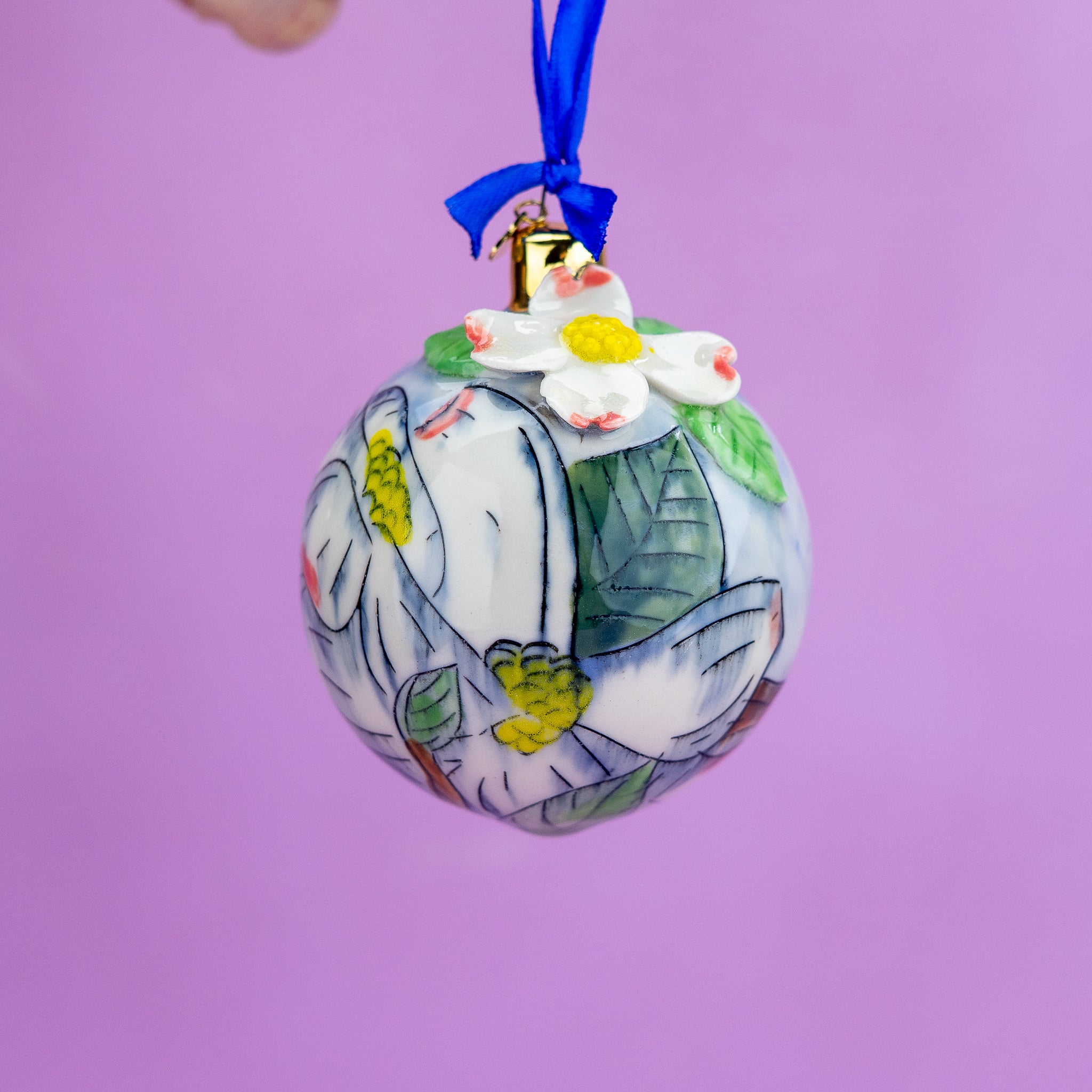 A delightful bauble to deck the halls! Perfect for adding personality to your tree or displaying as a year-round accent piece that sparks joy every time you see it. Measures approximately 2.75 x 2.75 x 4" excluding ribbon