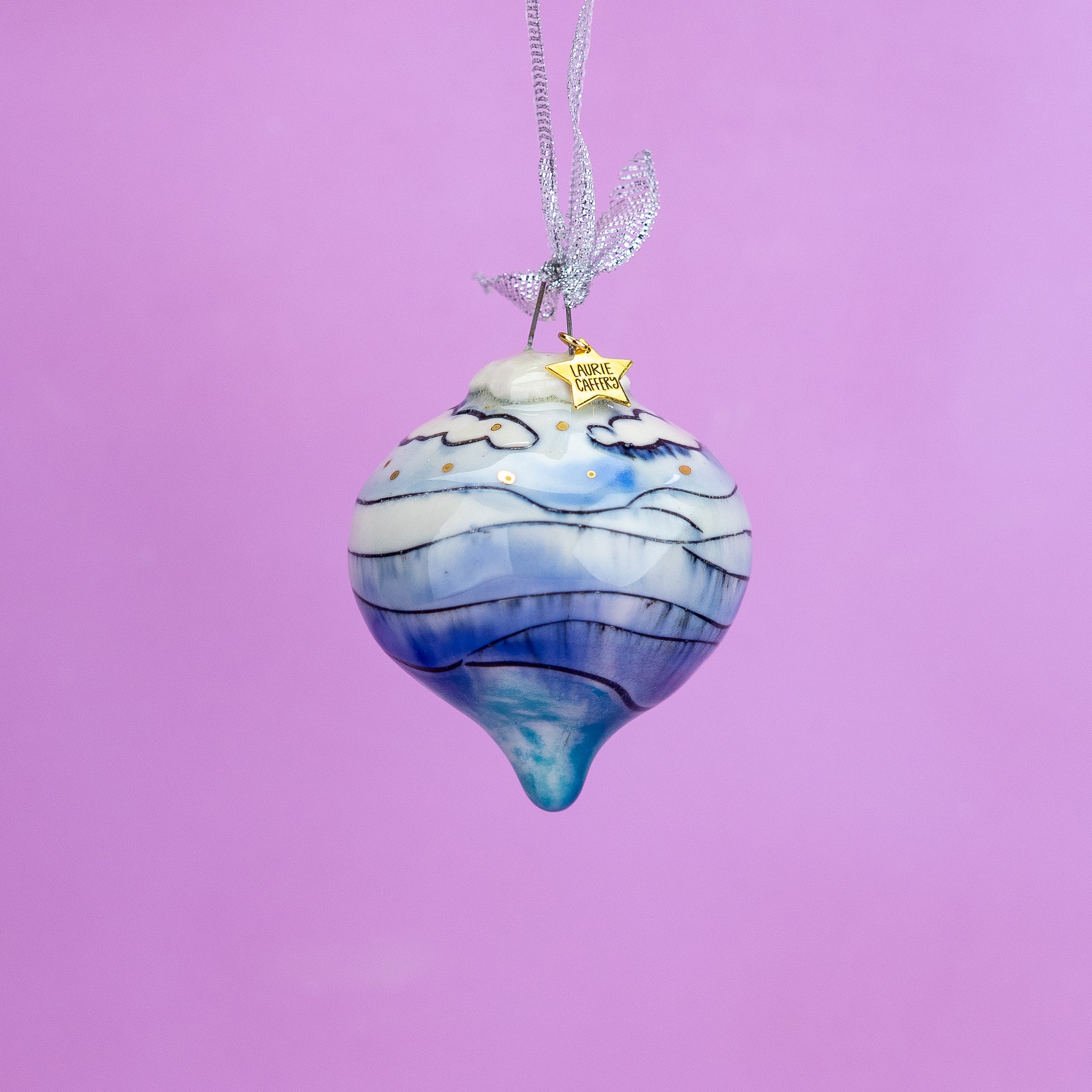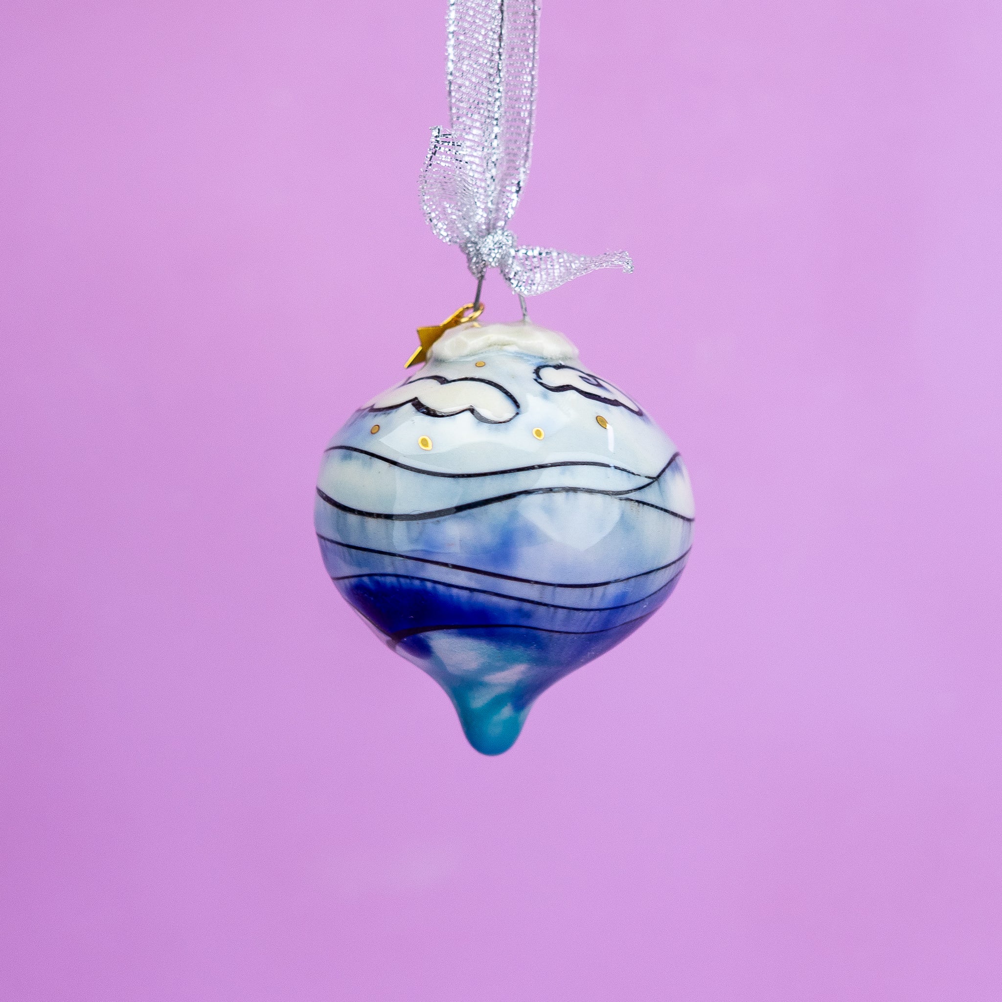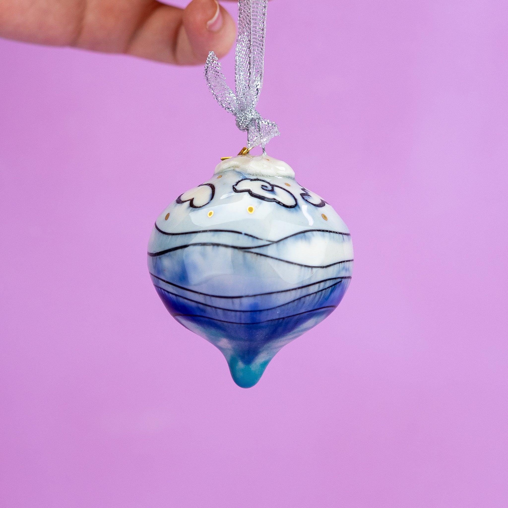 Porcelain ornaments are more durable than you might think, but still require similar care to a glass ornament. Handle with care and be mindful of the embedded wire hangers, and this piece will last a lifetime.