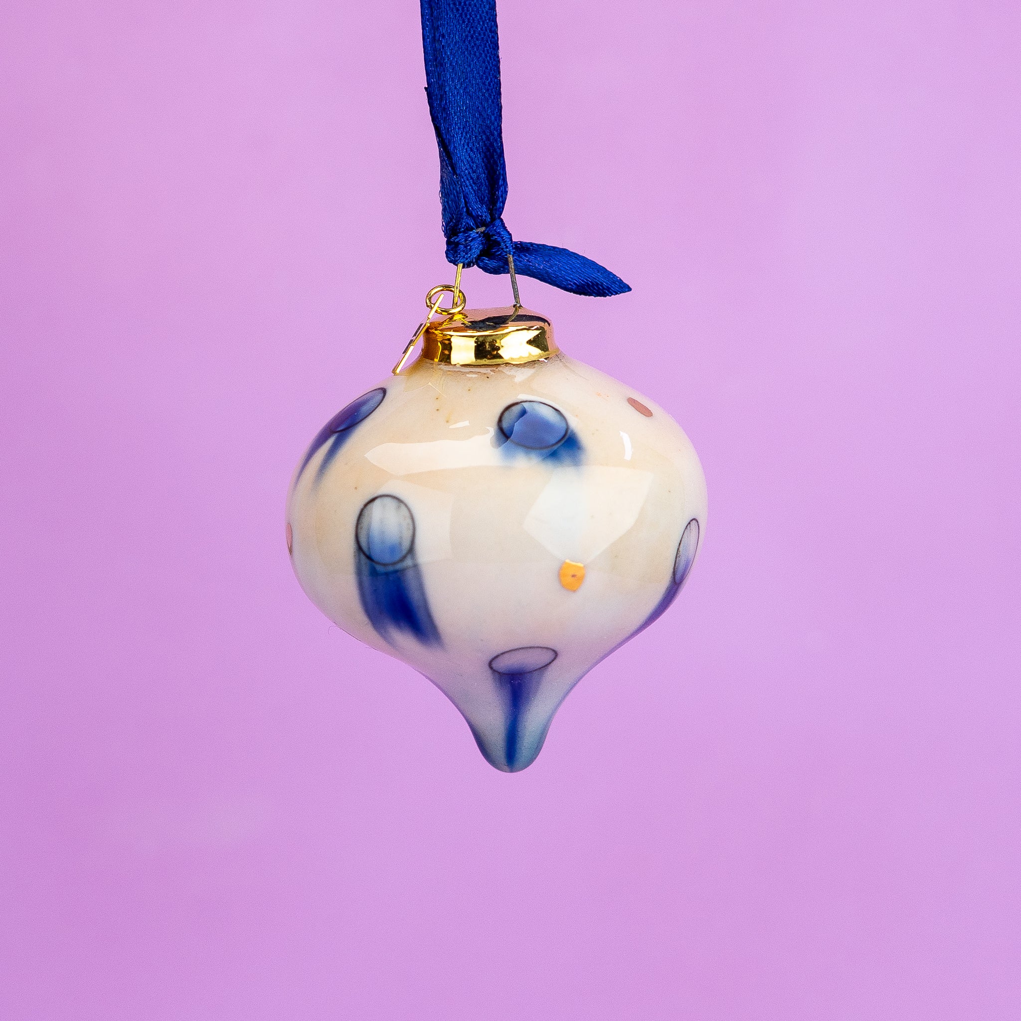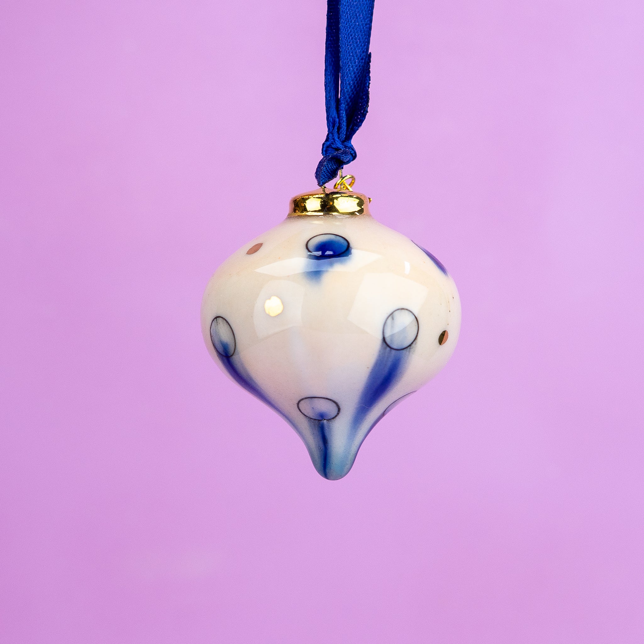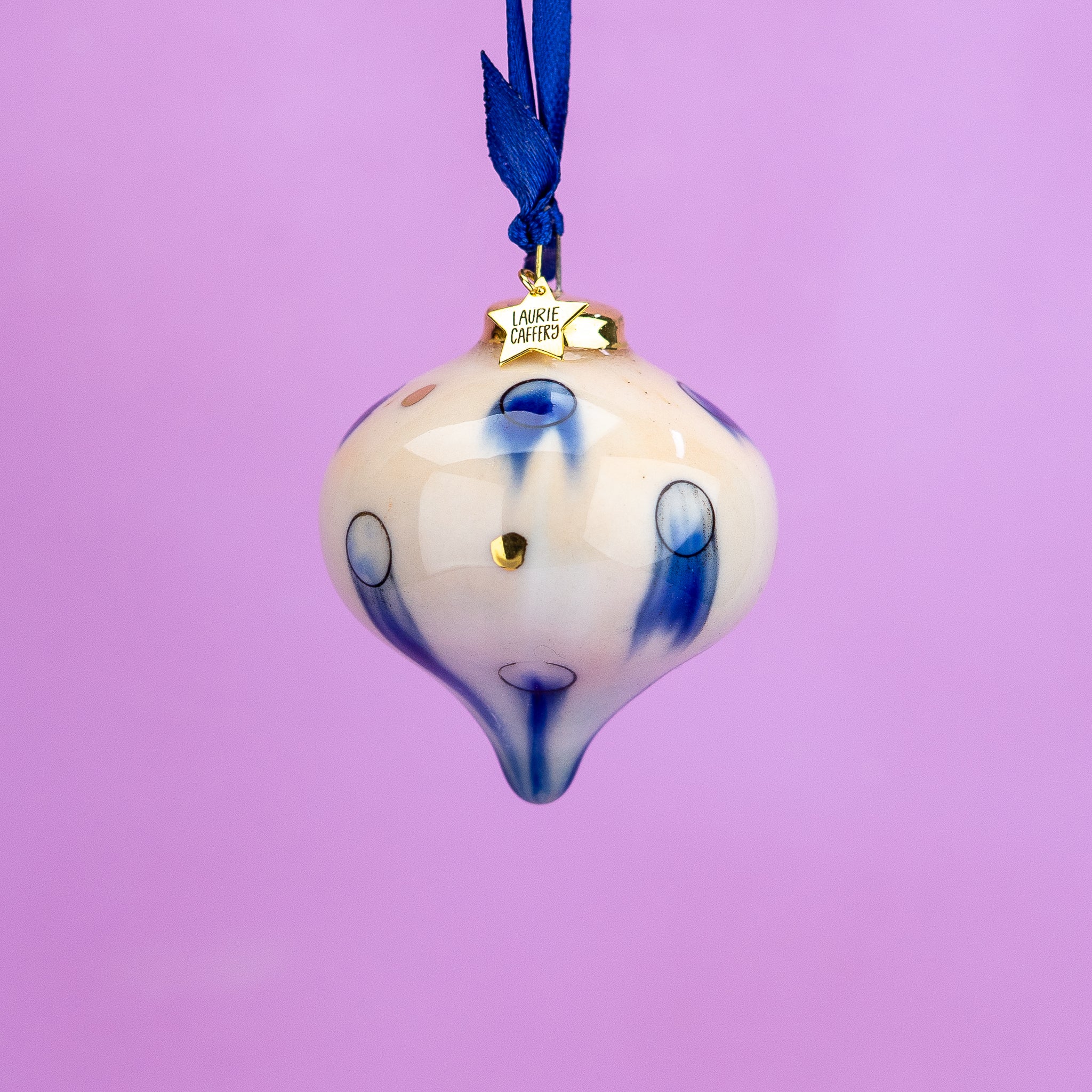 Porcelain ornaments are more durable than you might think, but still require similar care to a glass ornament. Handle with care and be mindful of the embedded wire hangers, and this piece will last a lifetime.