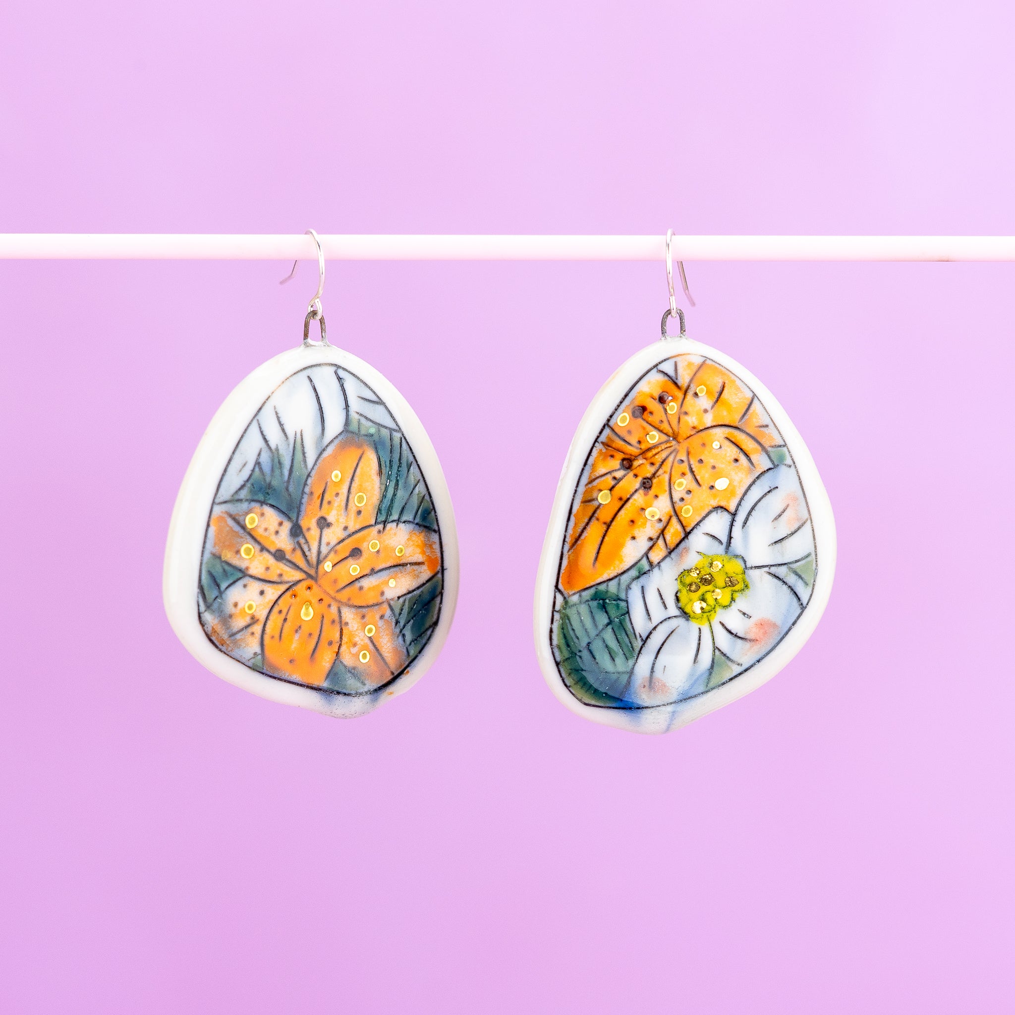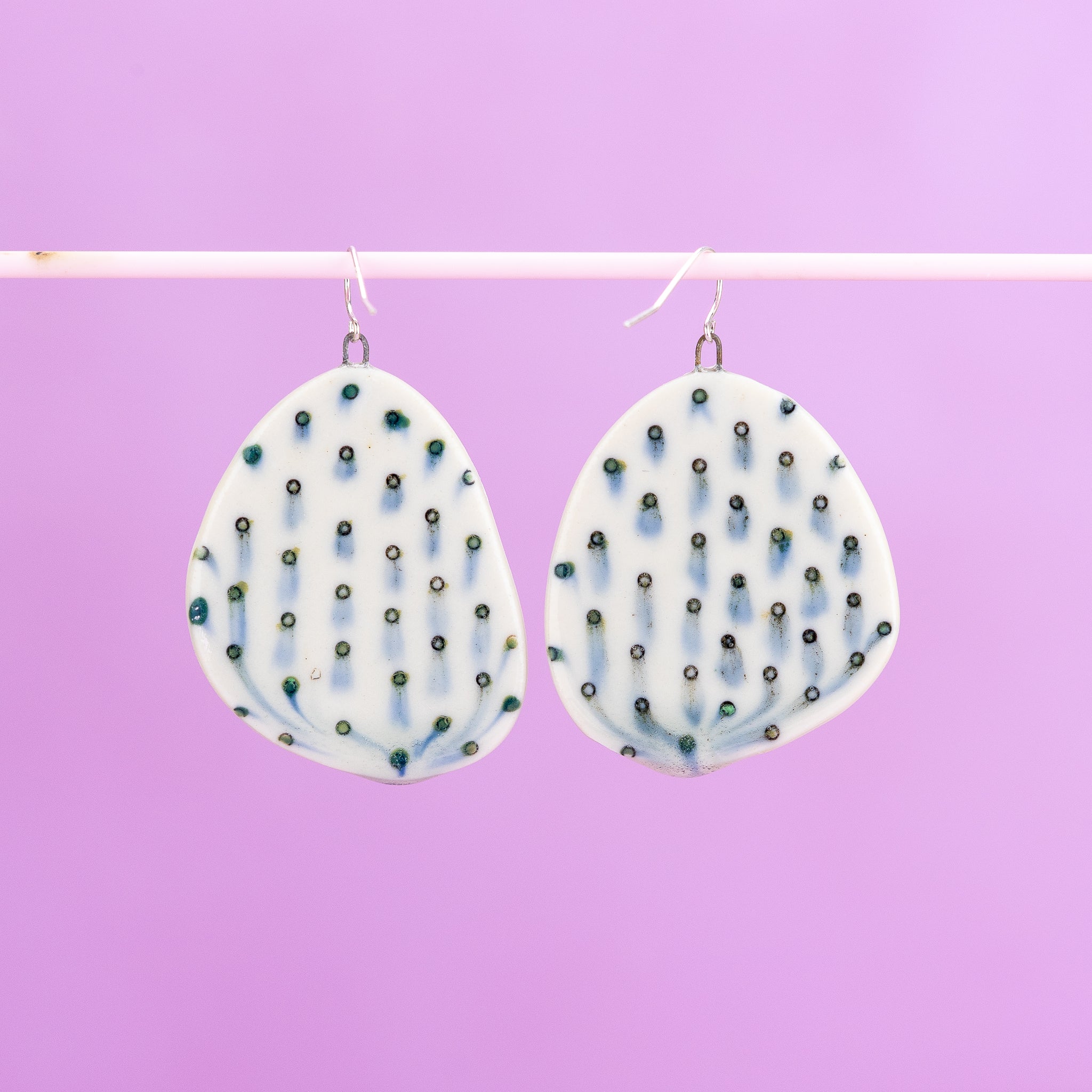 Approximately 1.25 x .25 x .75" including hardware. Sterling Silver earring hooks.