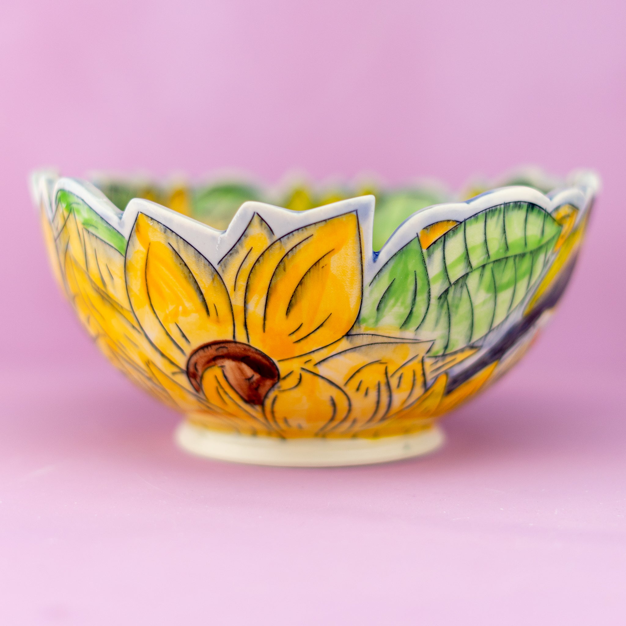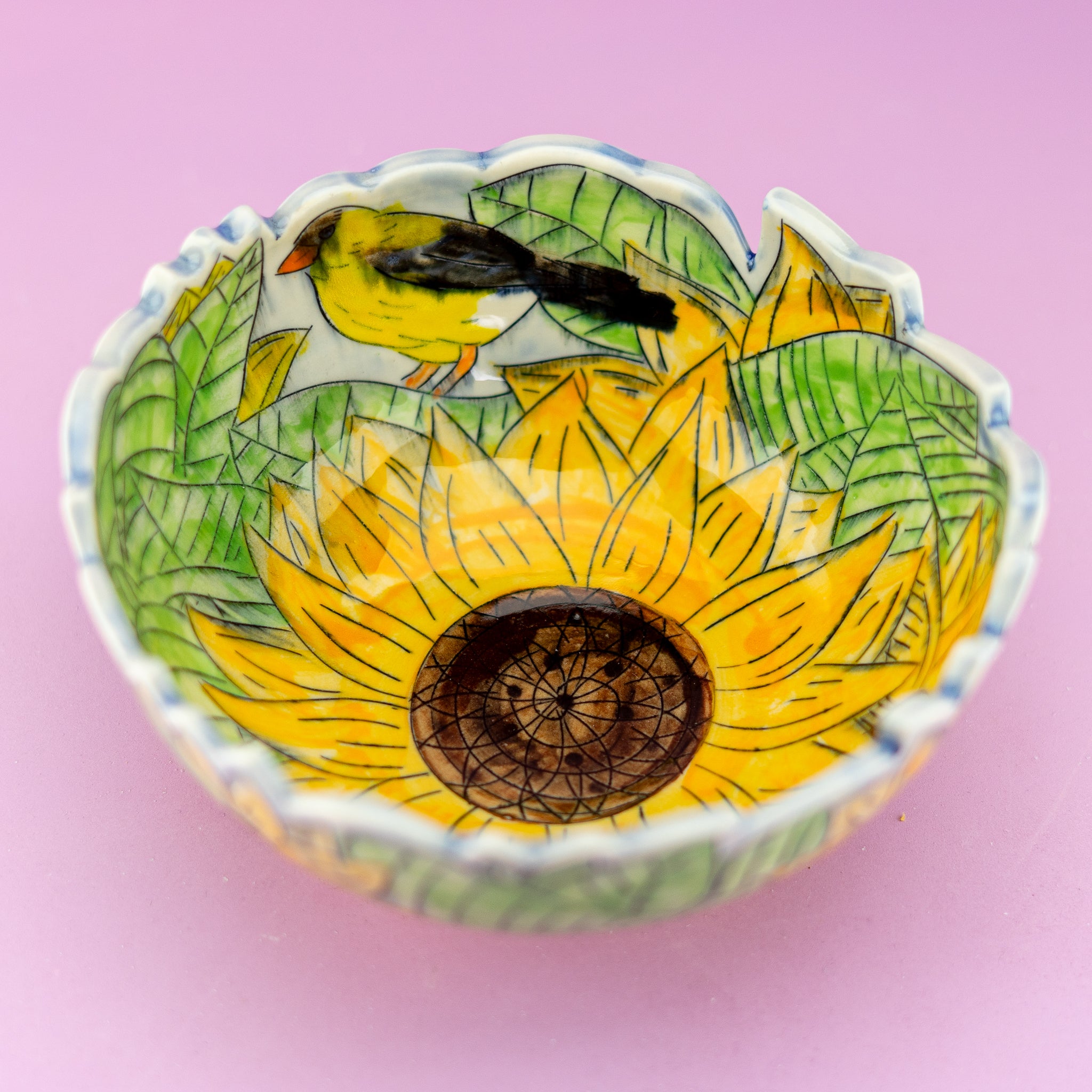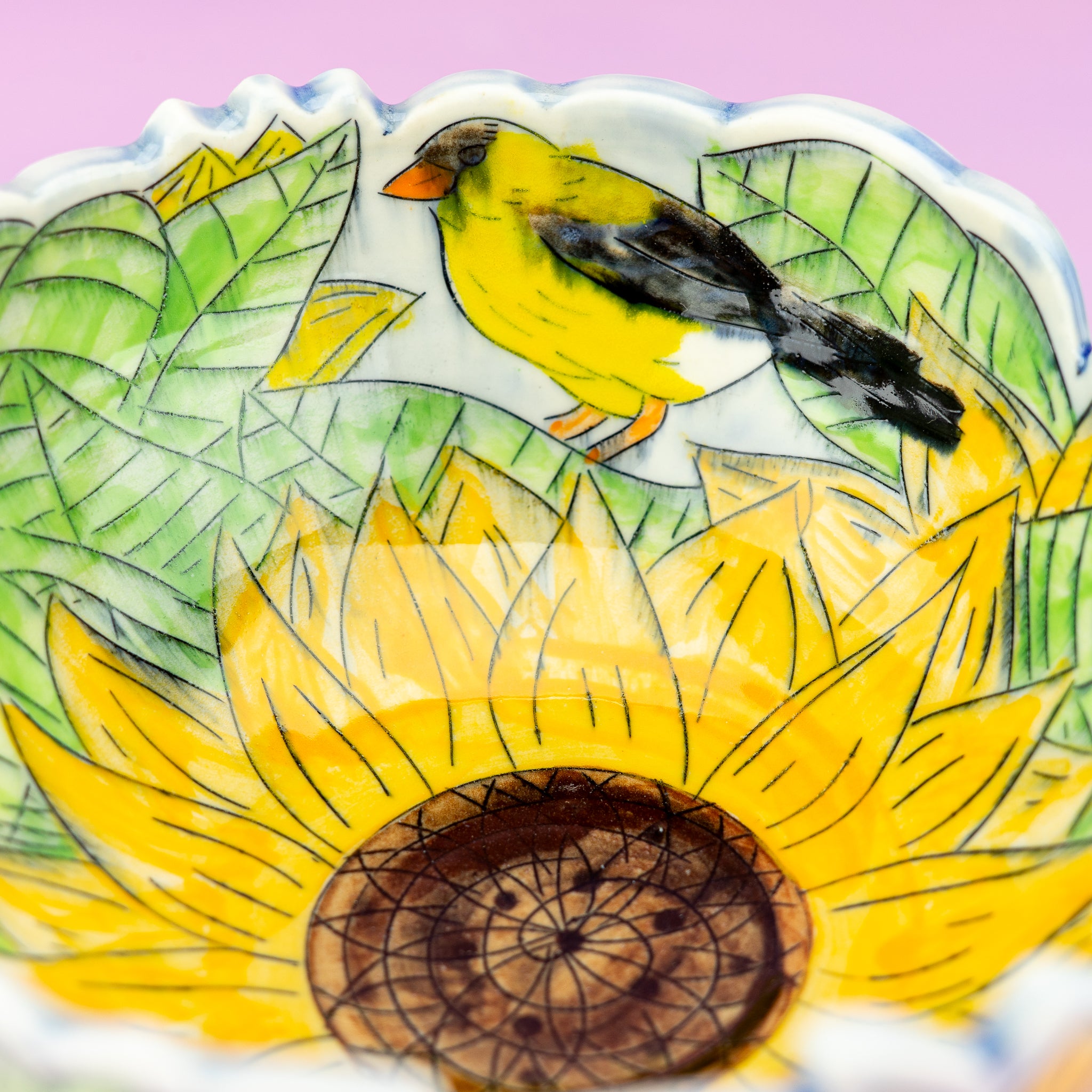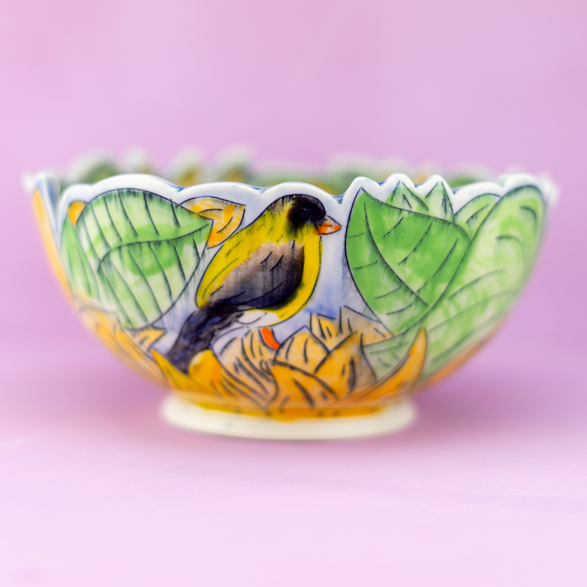 # 18 Goldfinch & Sunflower : Small Serving Bowl