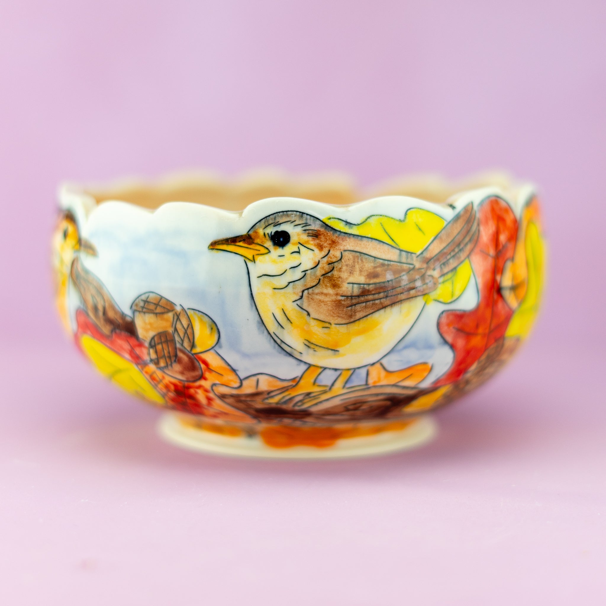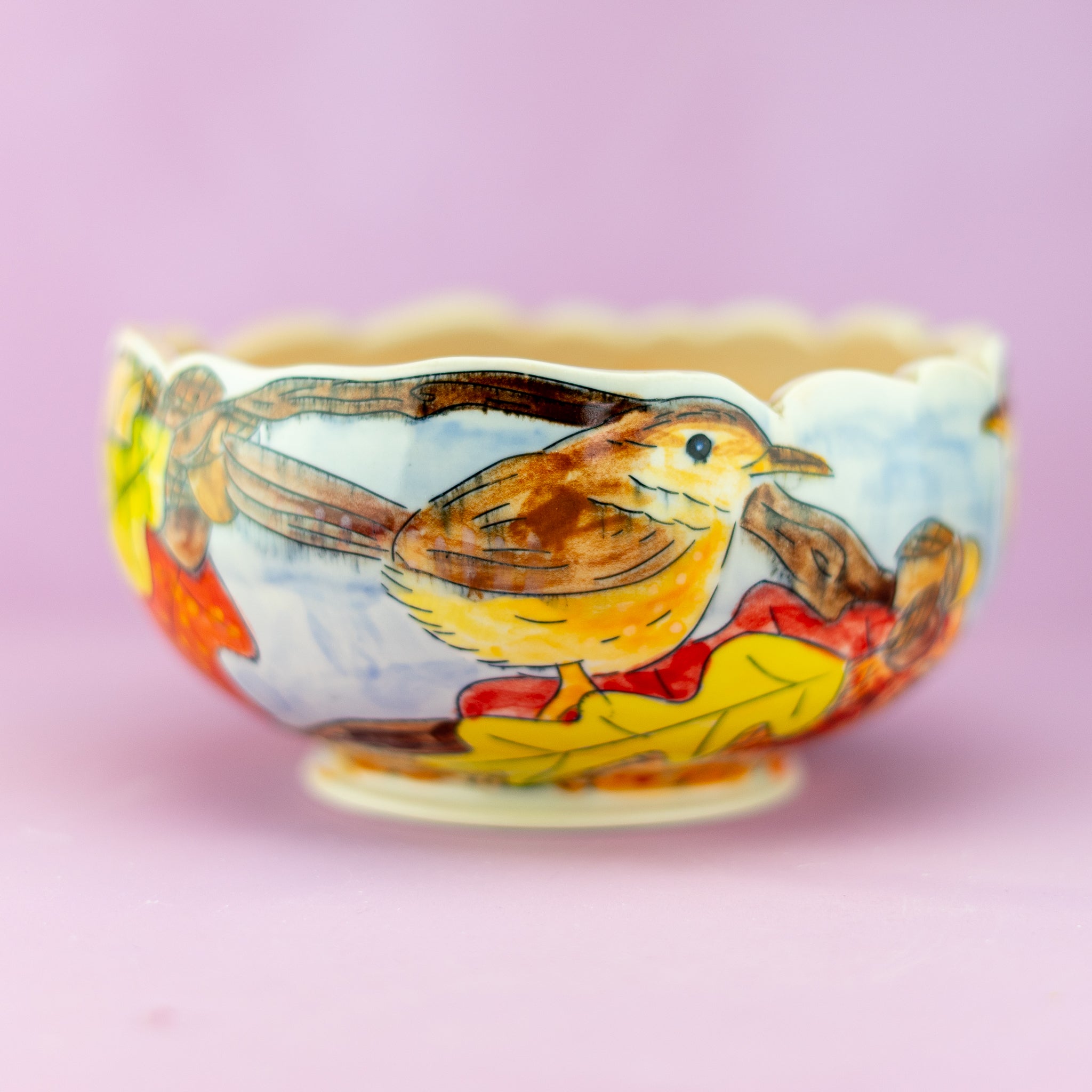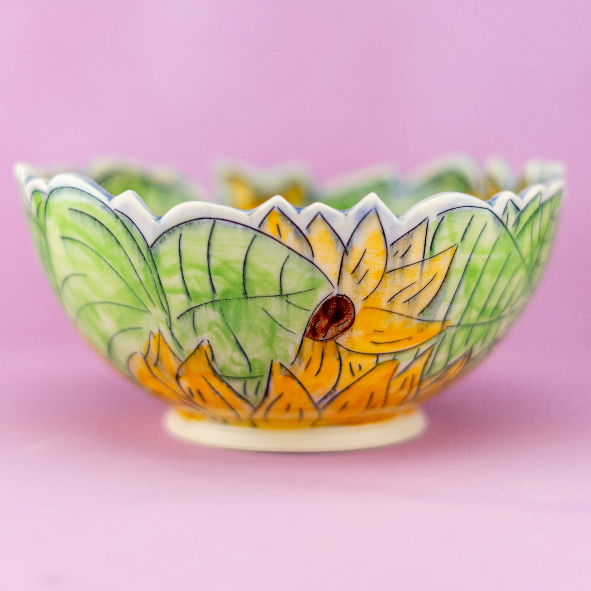 # 18 Goldfinch & Sunflower : Small Serving Bowl