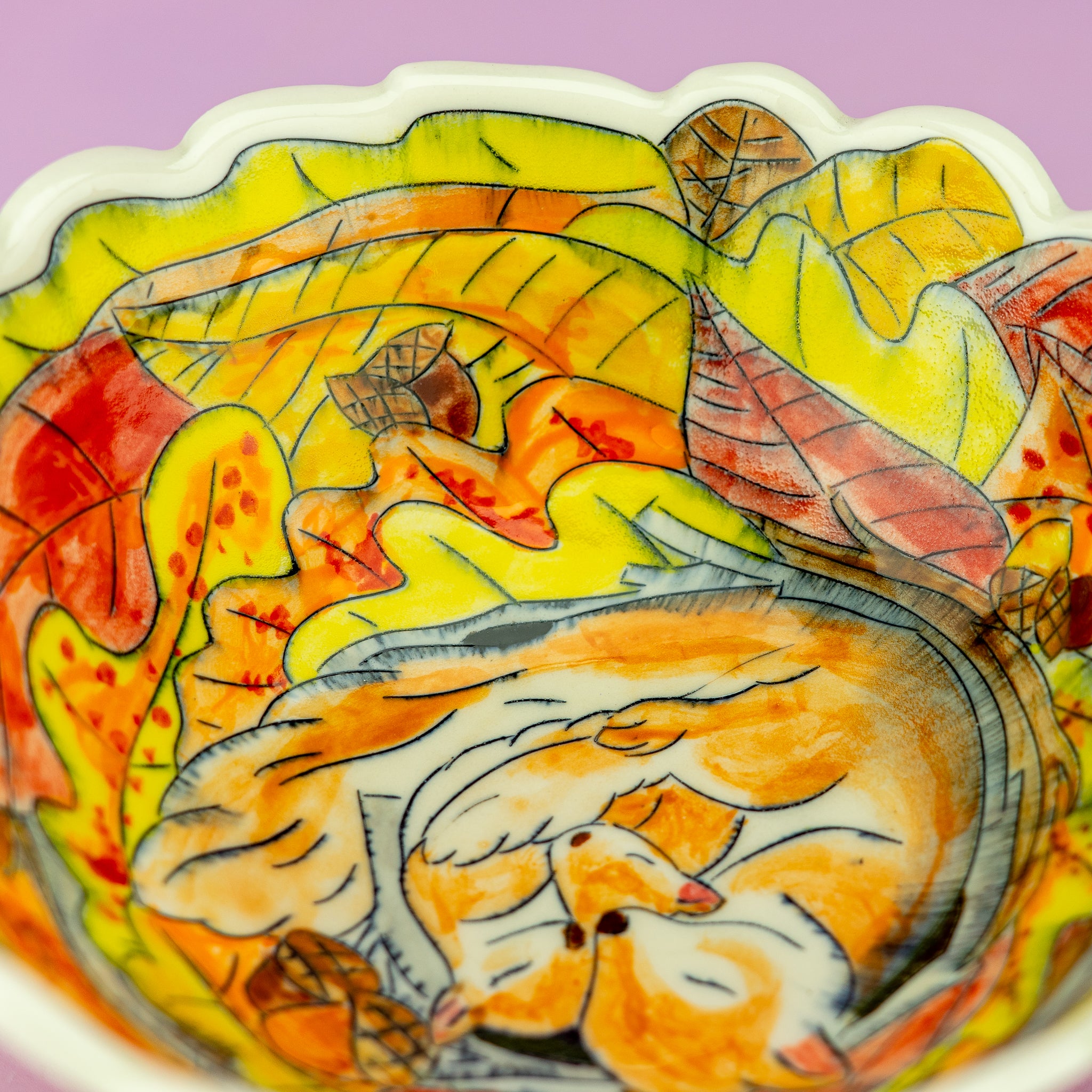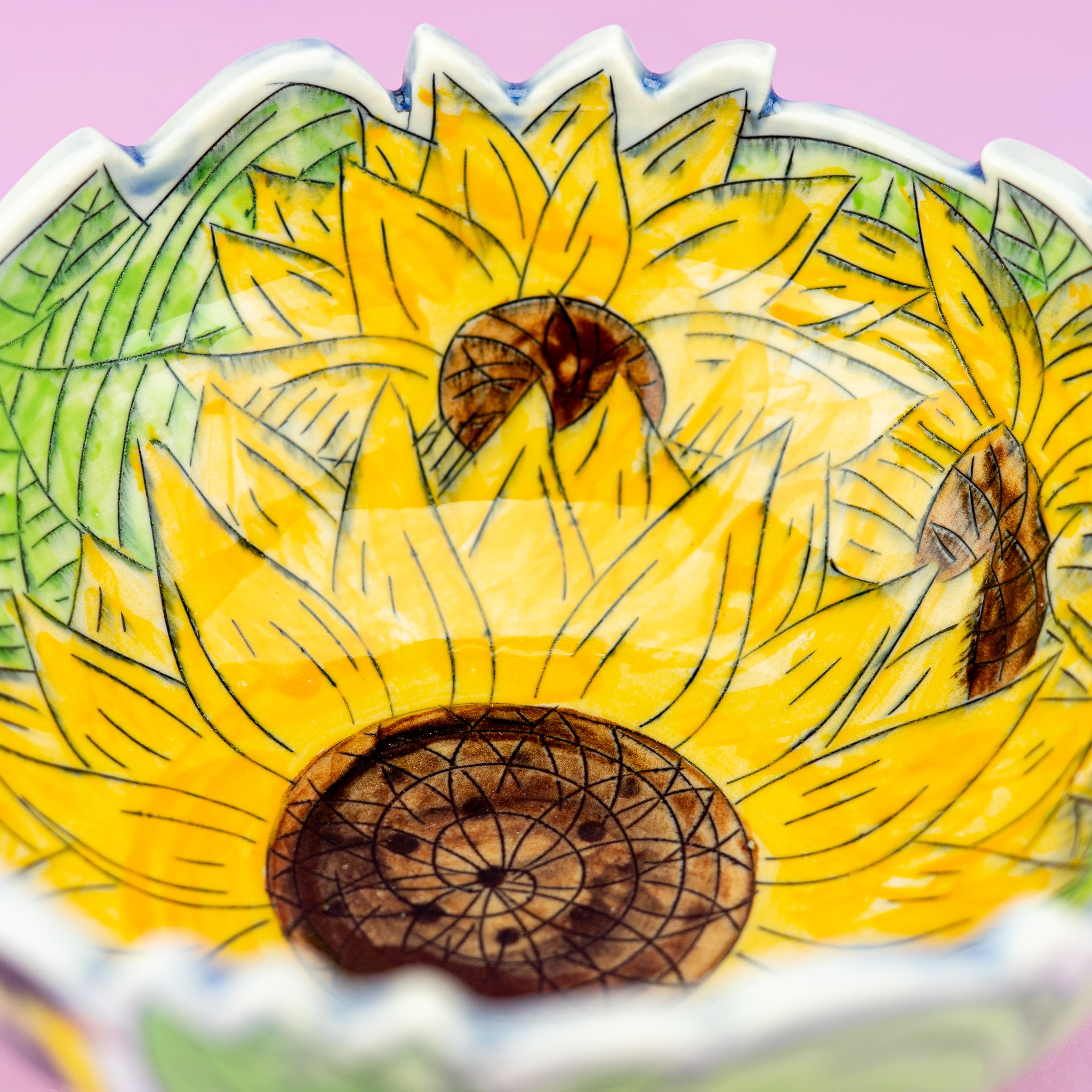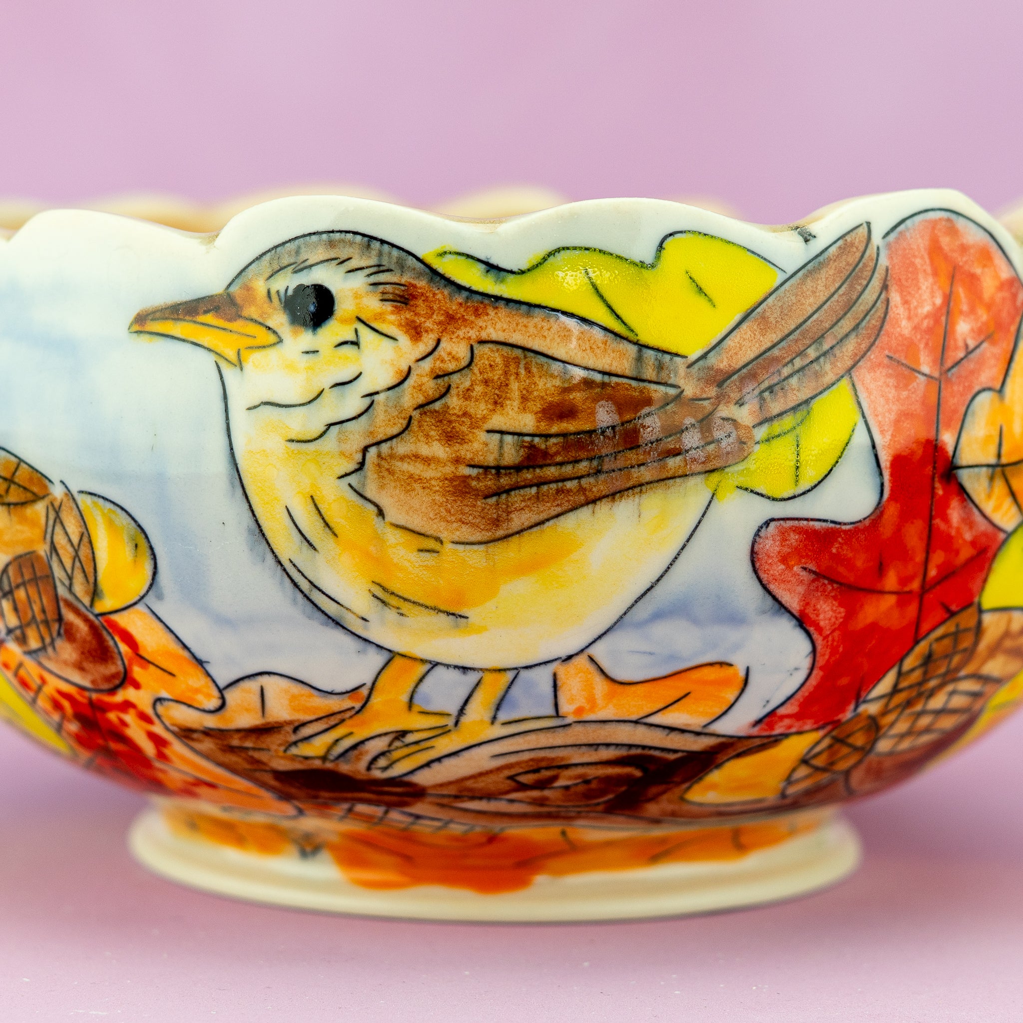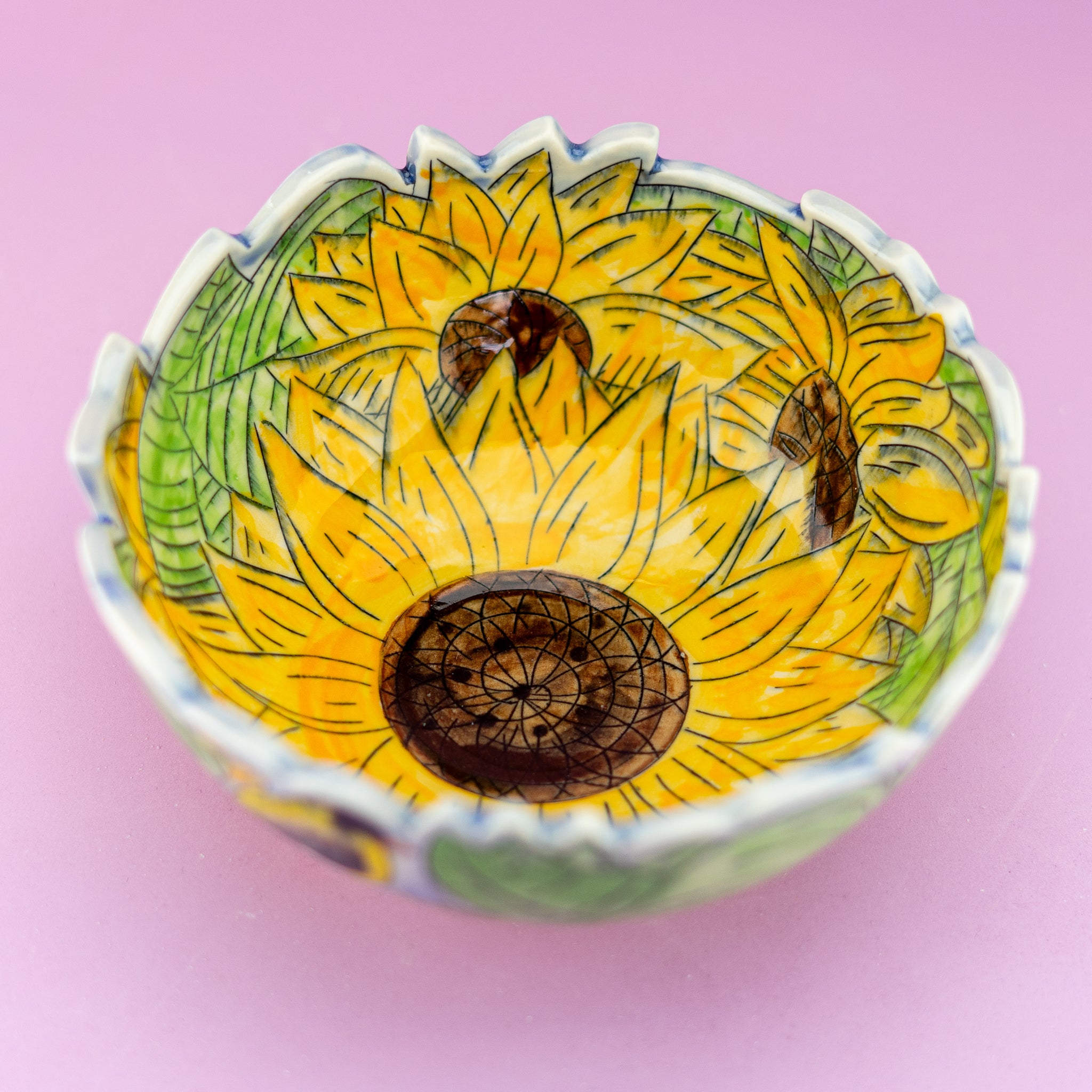 # 18 Goldfinch & Sunflower : Small Serving Bowl