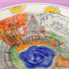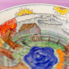 Every little autumnal detail is accounted for in this lovely scene! A cozy valley cottage, surrounded by a bountiful pumpkin patch and under swaying fluffy trees. A deep blue pond dotted with scattered leaves. A red barn perches up on the hill, surrounded by sunflowers.