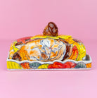 Add a cozy vibe to your kitchen with this delightful butter dish featuring a sleepy squirrel snuggled up among autumn leaves. A delightful home for a delightful condiment!