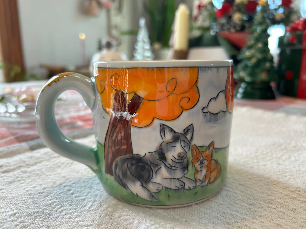 I am so excited to have a custom mug from Laurie! Having a piece inspired by some of the most special parts of my life, with Laurie’s artistry, vision, and flair, is a dream come true! Thank you, Laurie!