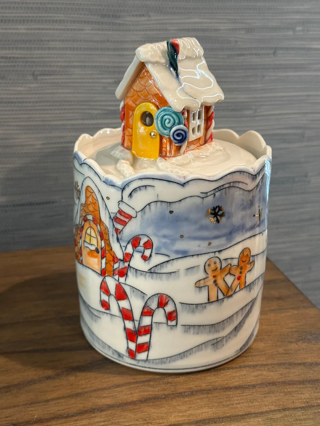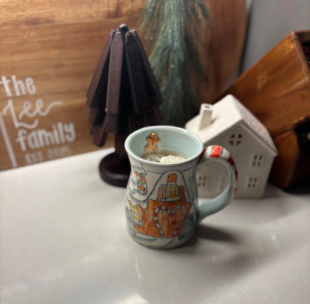 I’ve been admiring Laurie’s mugs for awhile and husband finally got me a big gingerbread mug. It is SO CUTE, well made, cute little gingerbread inside the rim, love the candy cane handle. It’s the best! Shipped quickly and was packed so securely. I’ve used it for almost all my coffees since receiving it.
