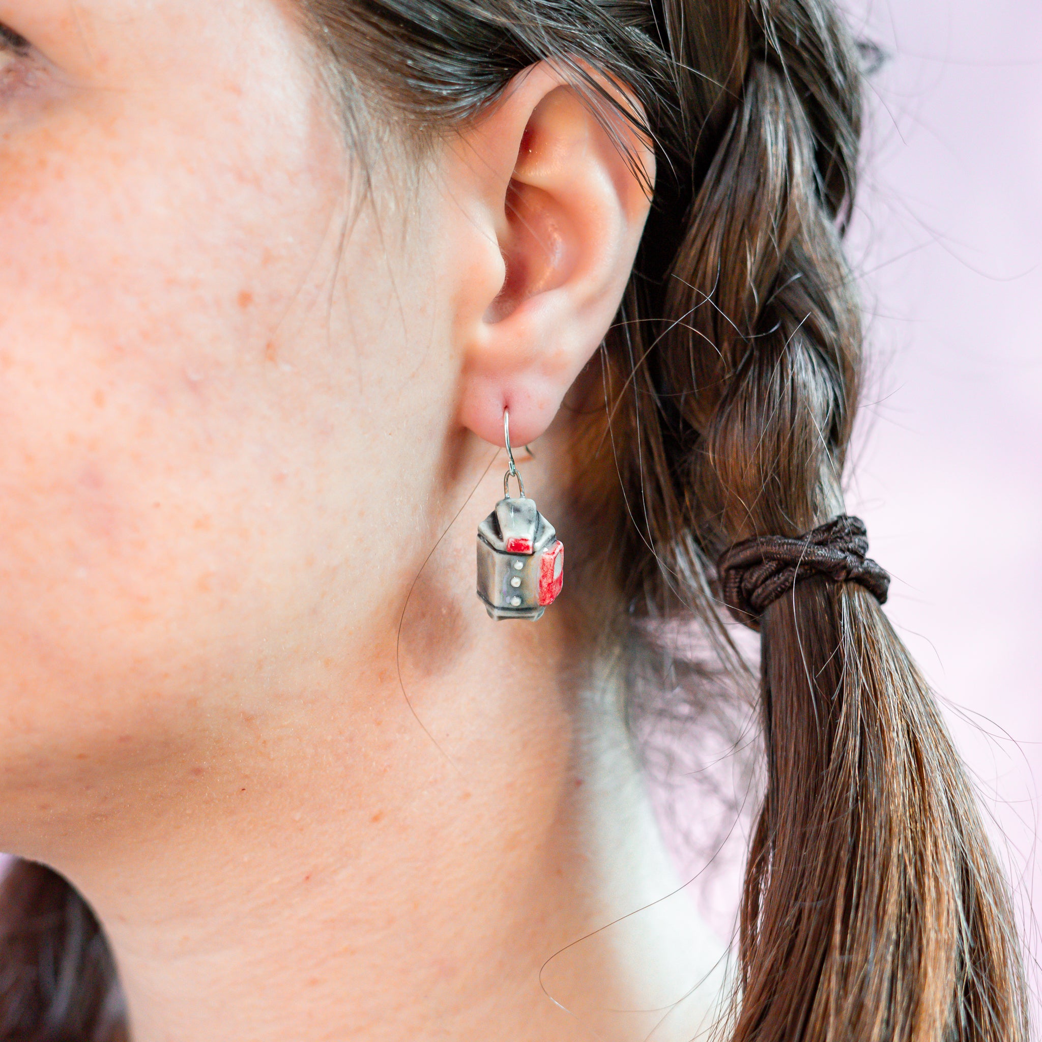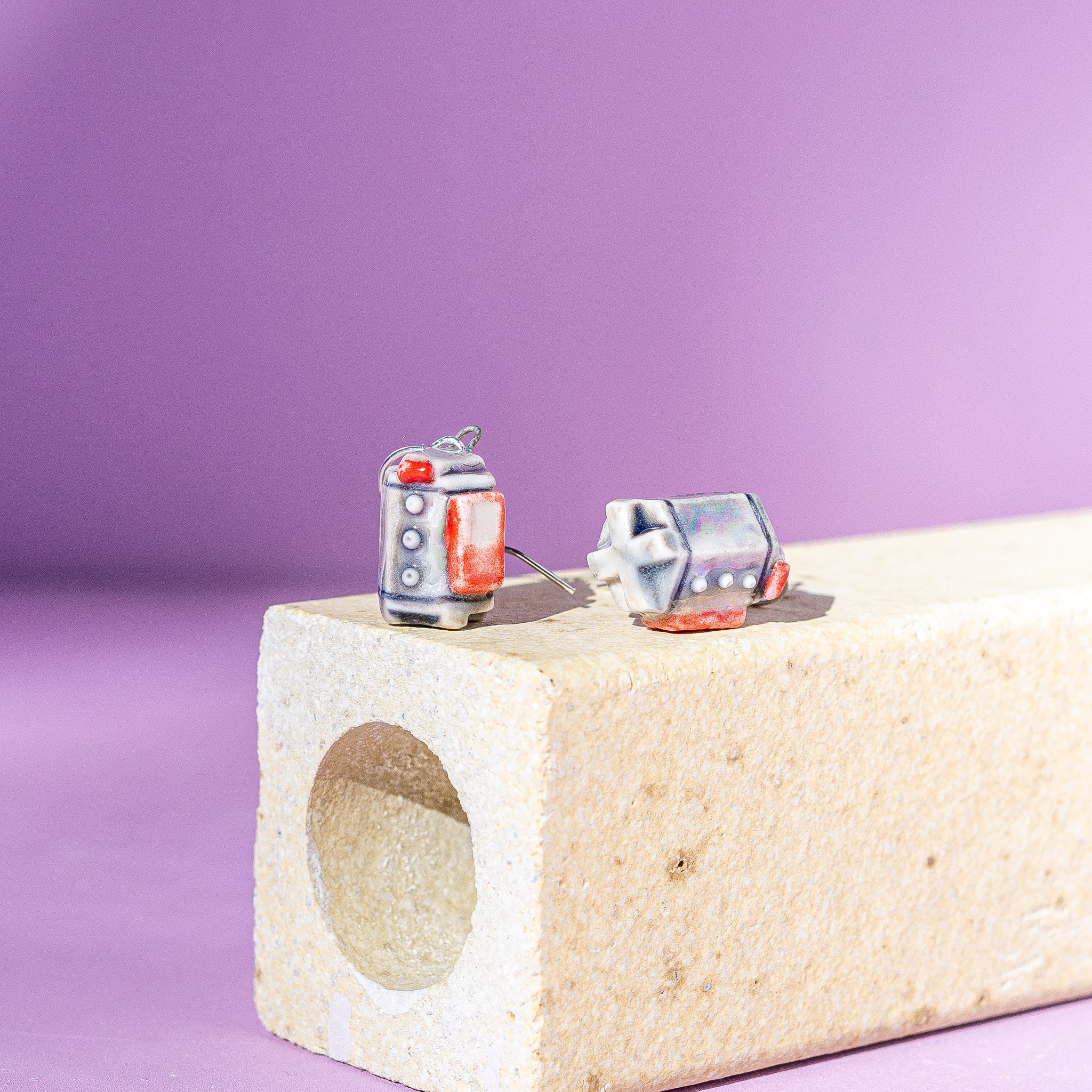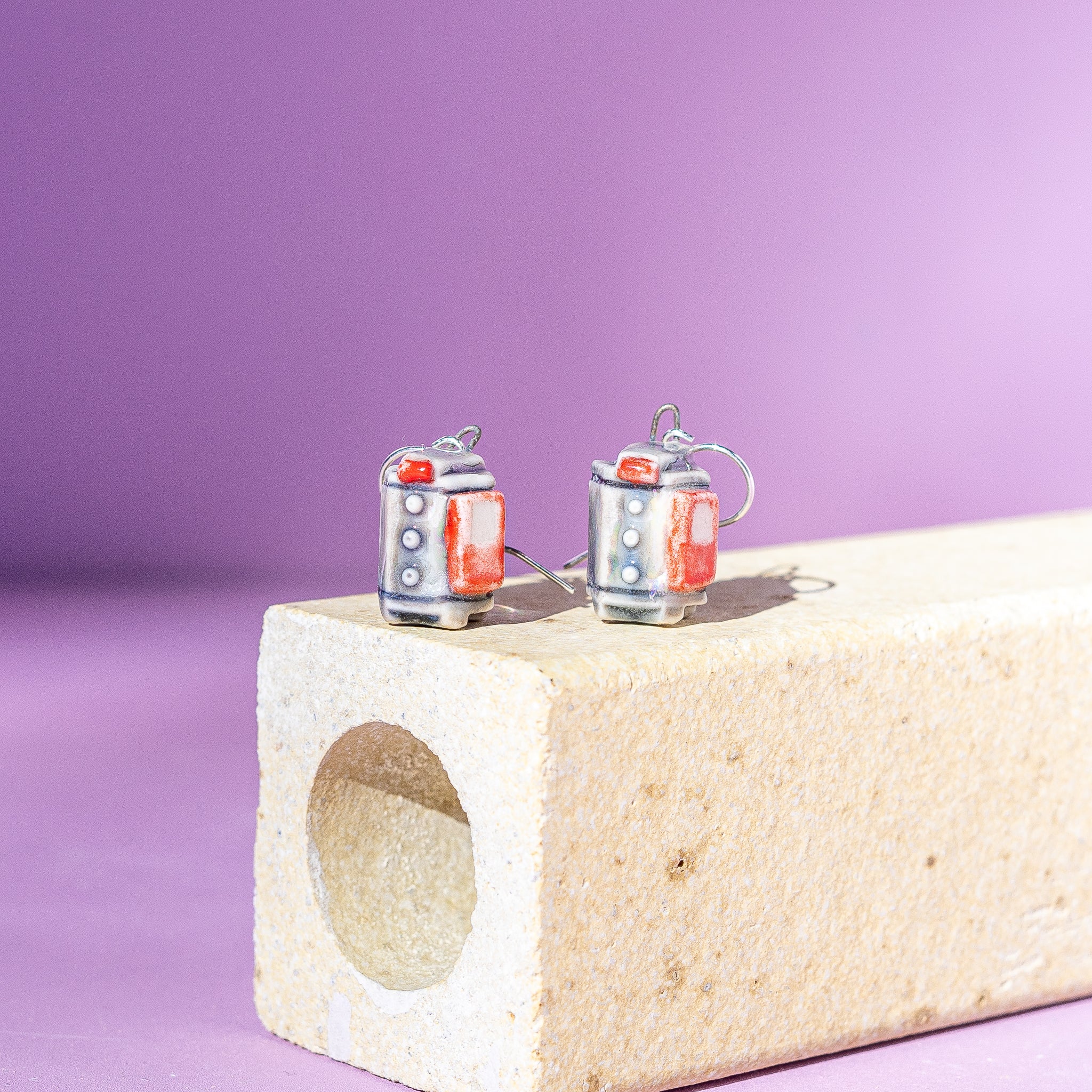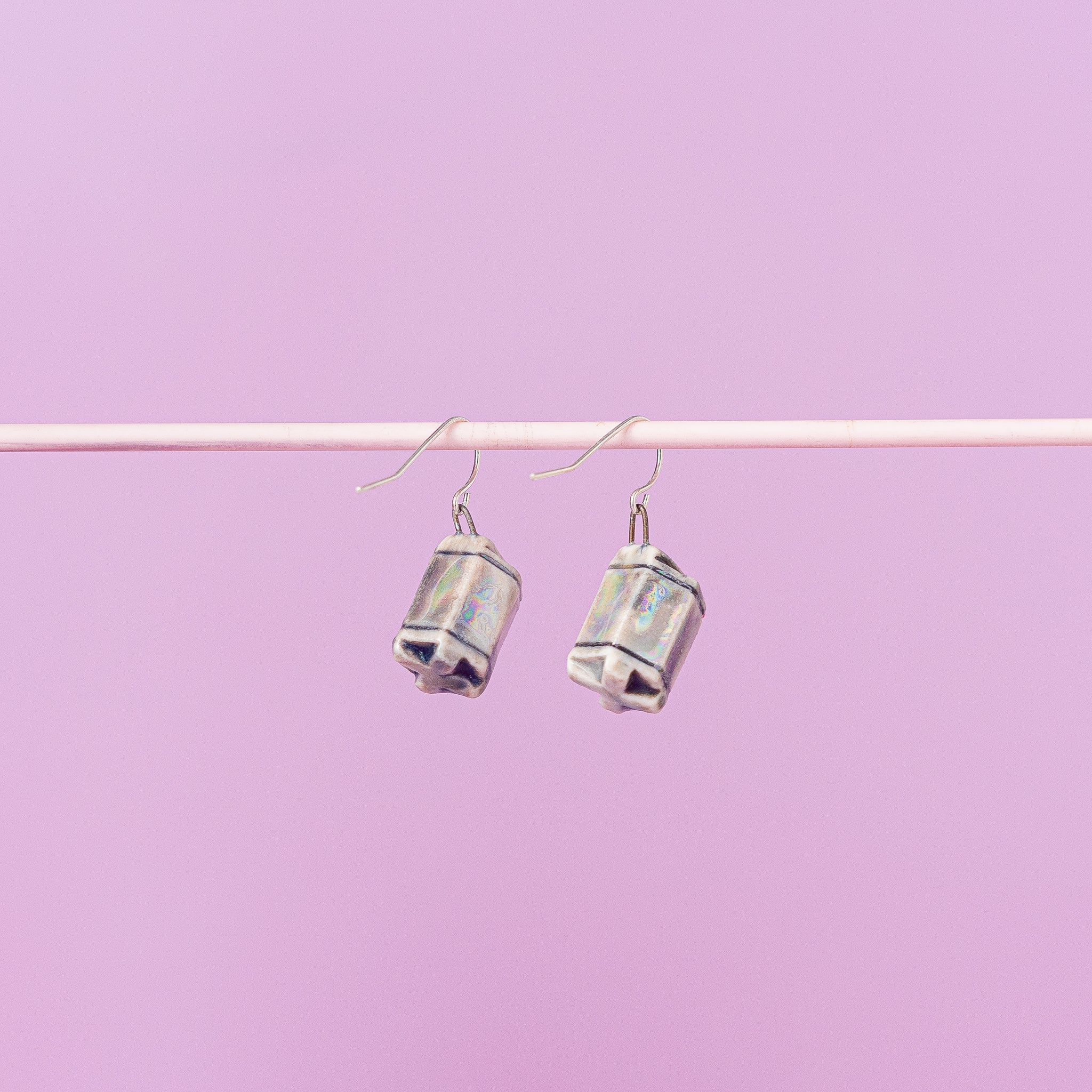Fire your pots on the go with these nifty miniature kiln earrings! Lovingly crafted and decorated with opalescent luster, these are sure to be eye-catching at your next NCECA.