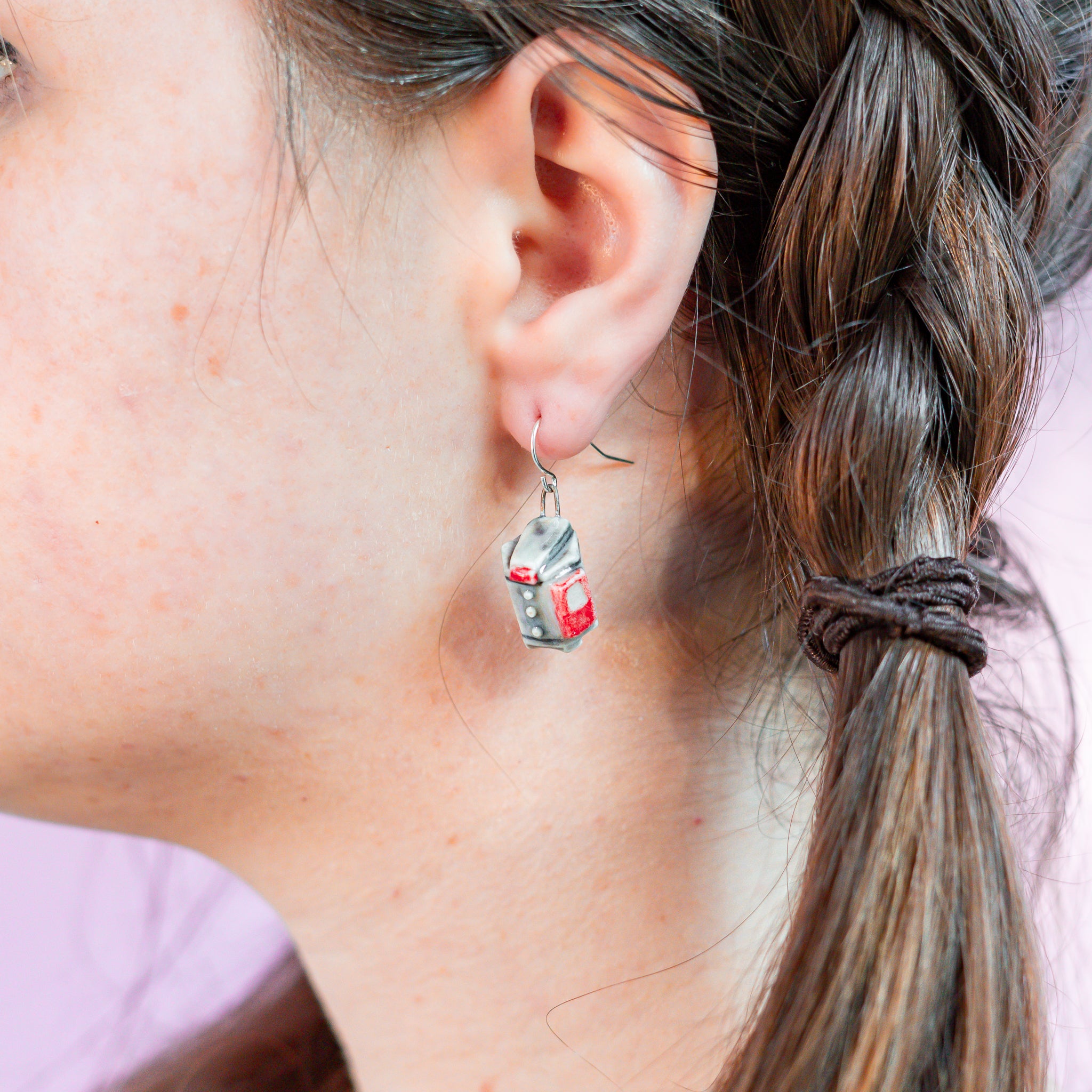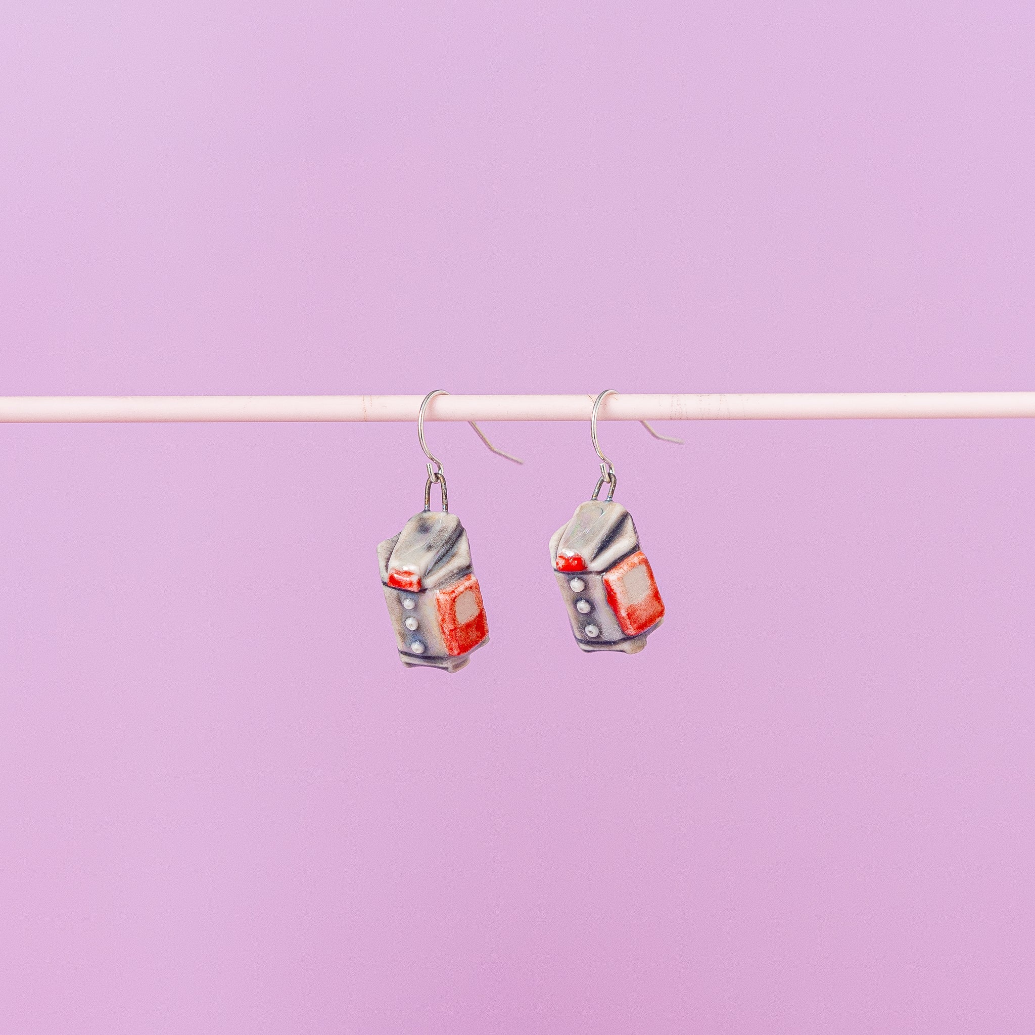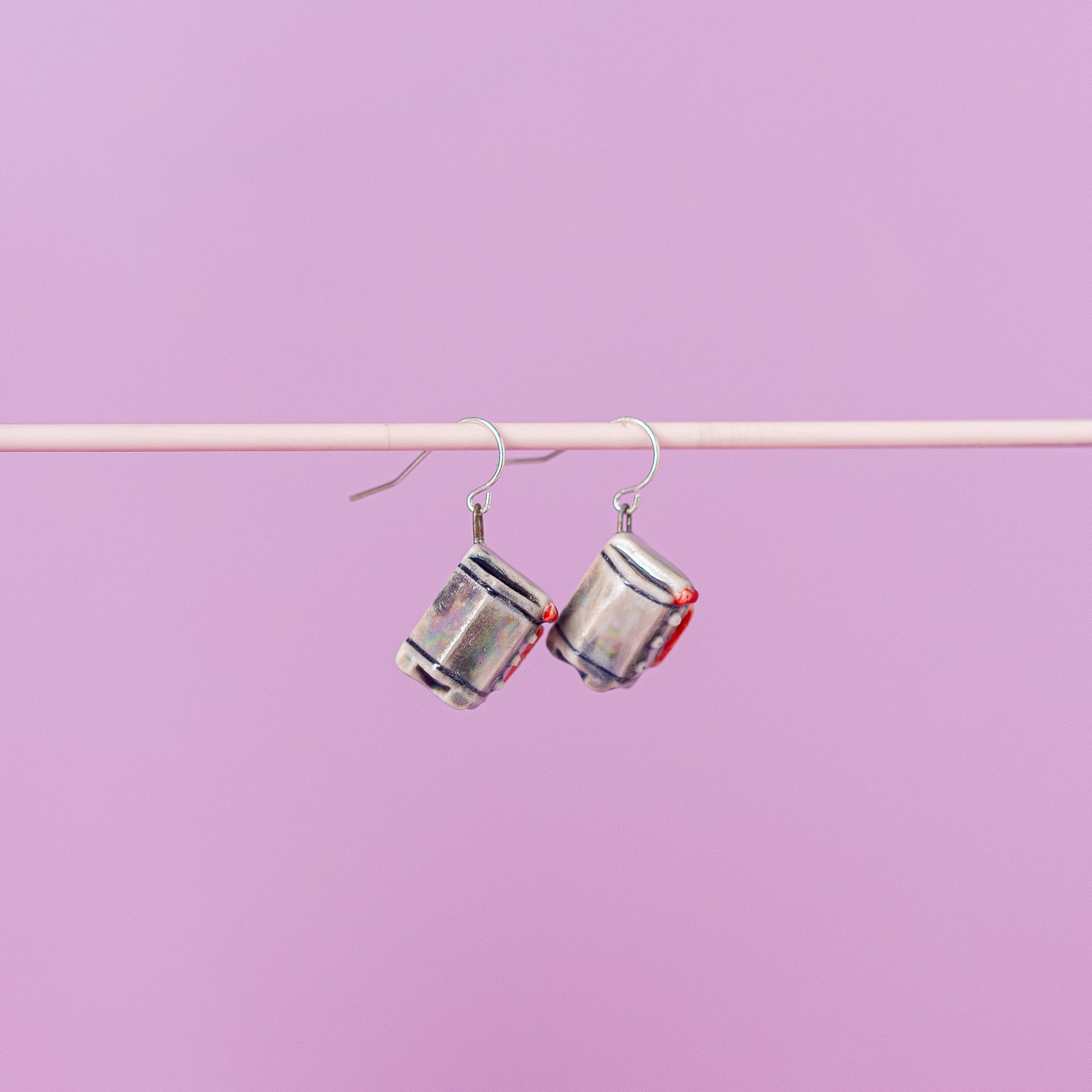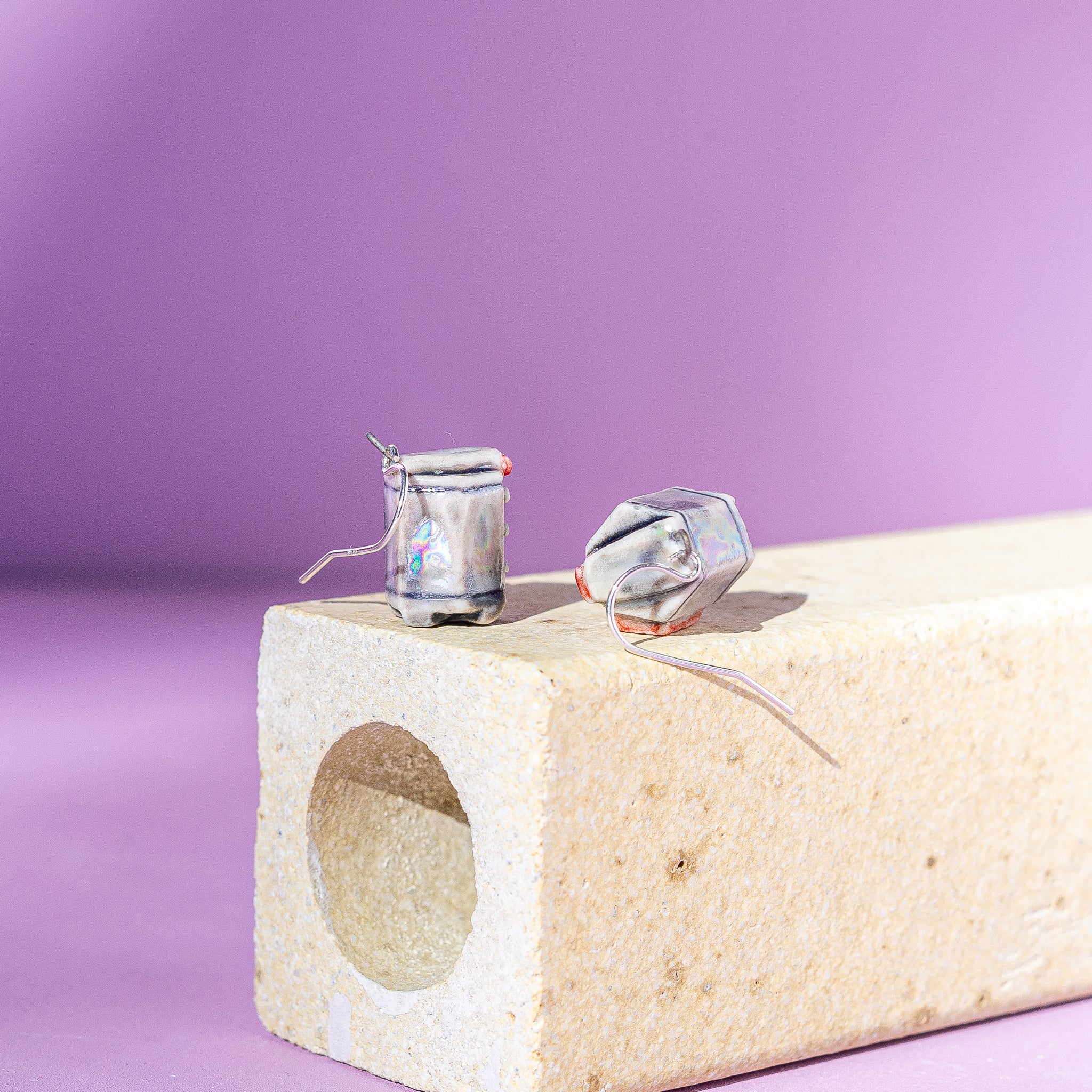 Fire your pots on the go with these nifty miniature kiln earrings! Lovingly crafted and decorated with opalescent luster, these are sure to be eye-catching at your next NCECA.
