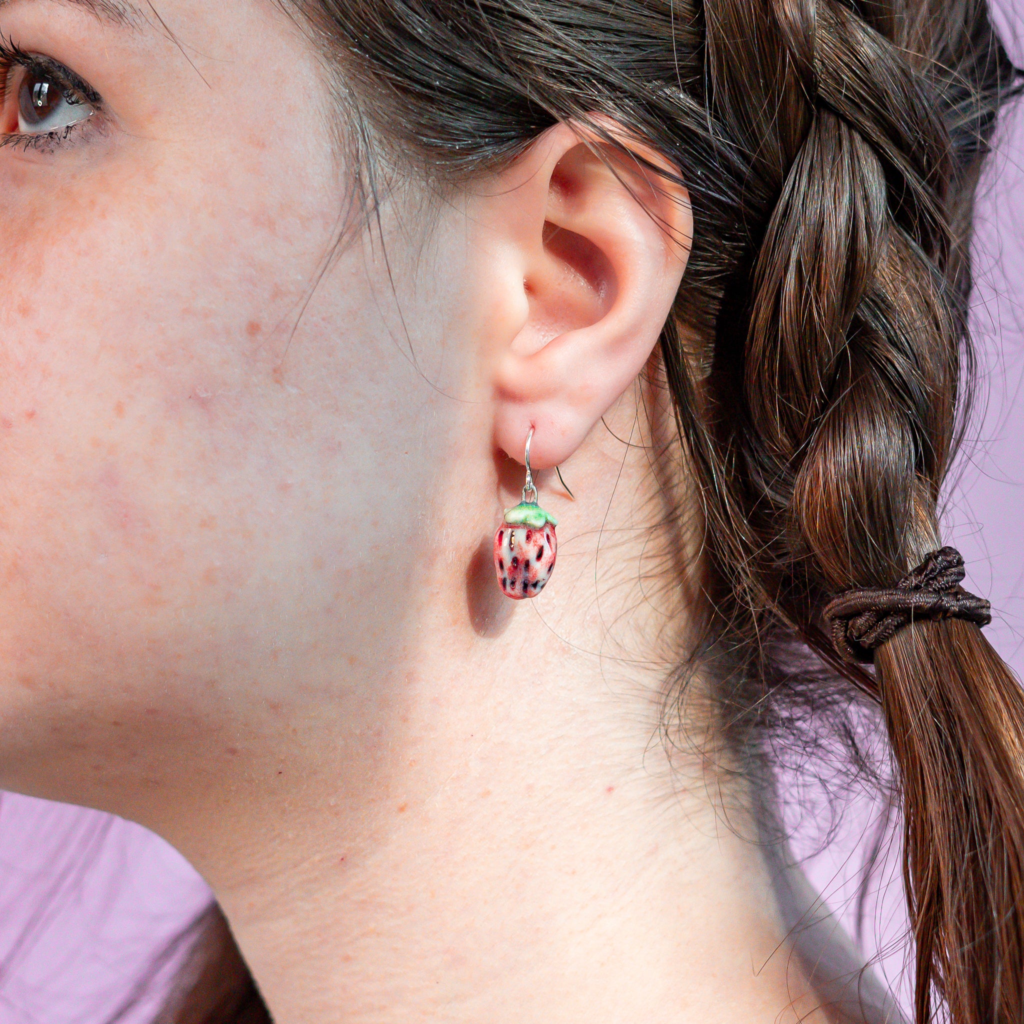 Approximately 1 x .5 x .75" including hardware. Sterling Silver earring hooks.