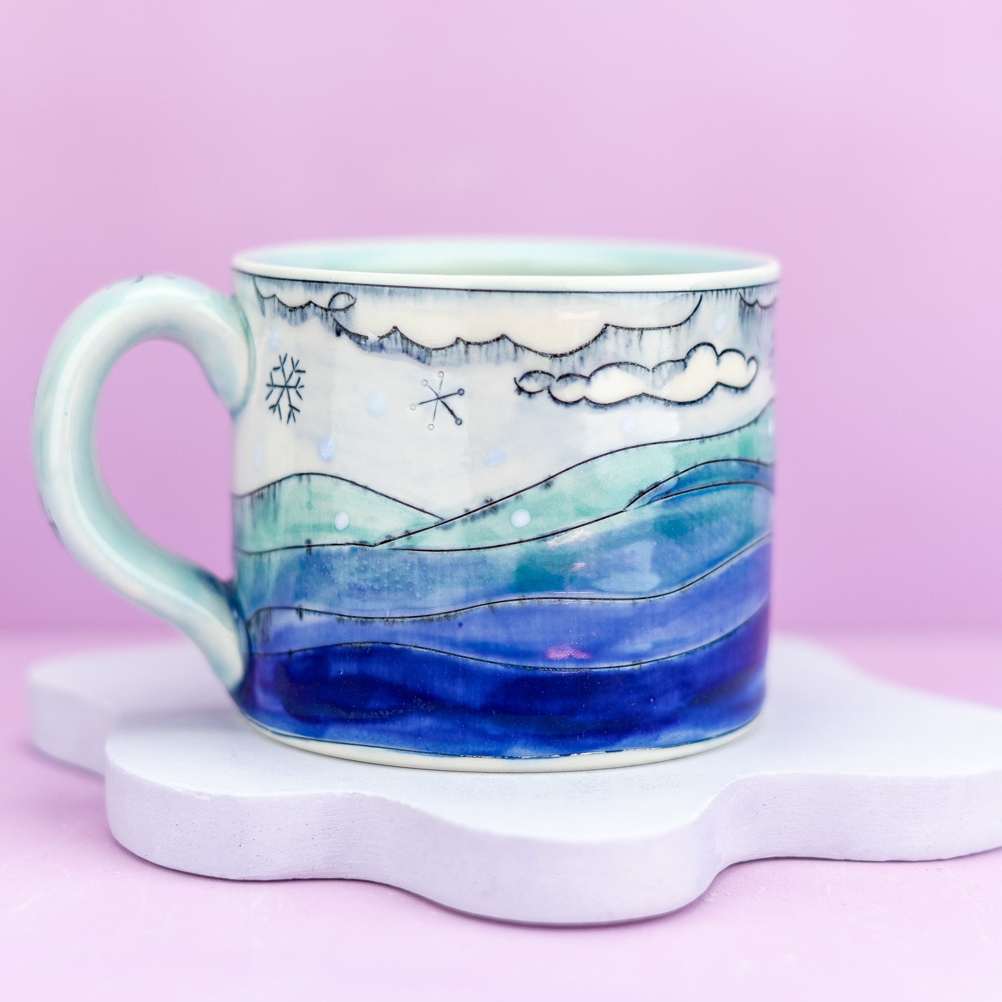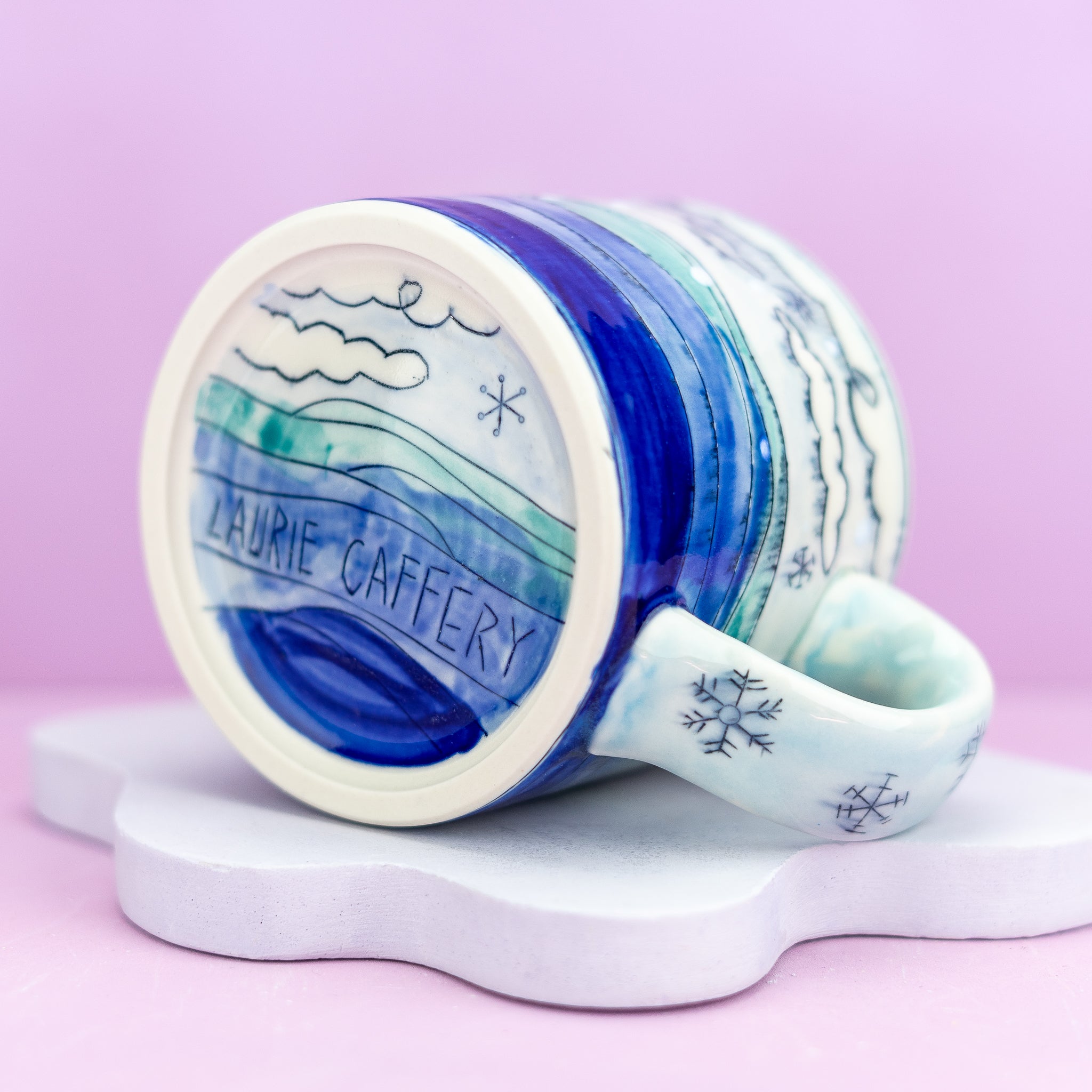 This mug is illustrated from top to tail, perfect for a big cup of hot chocolate on a cozy winter day.
